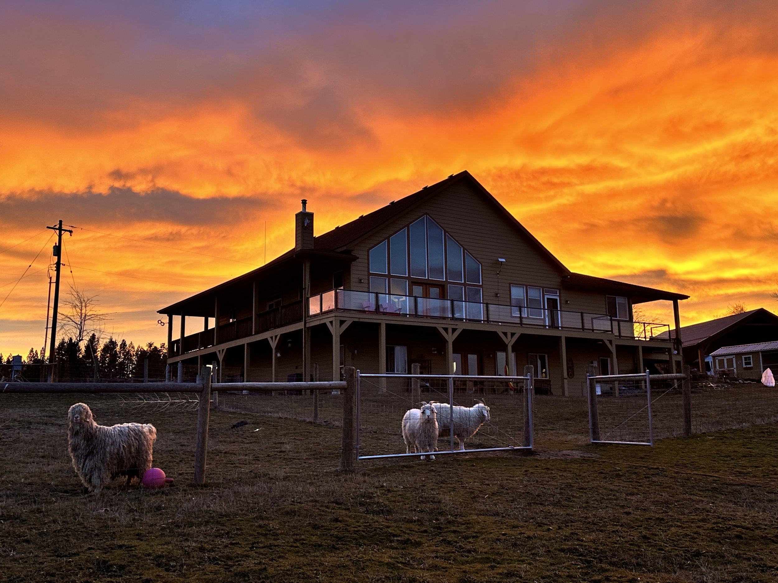 The goats don’t really care about impressive sunsets - they are more interested in the animal crackers I’m about to give them!