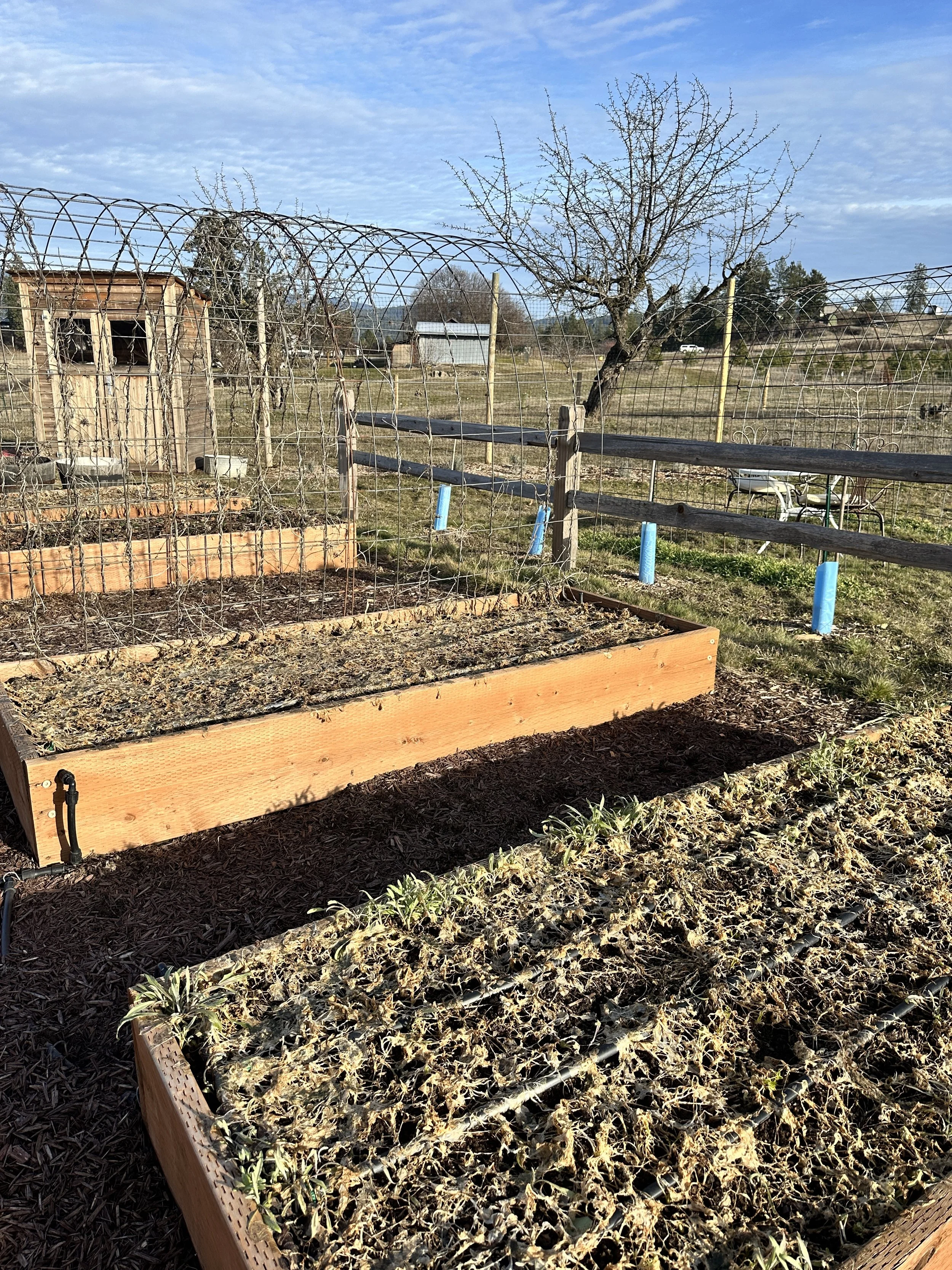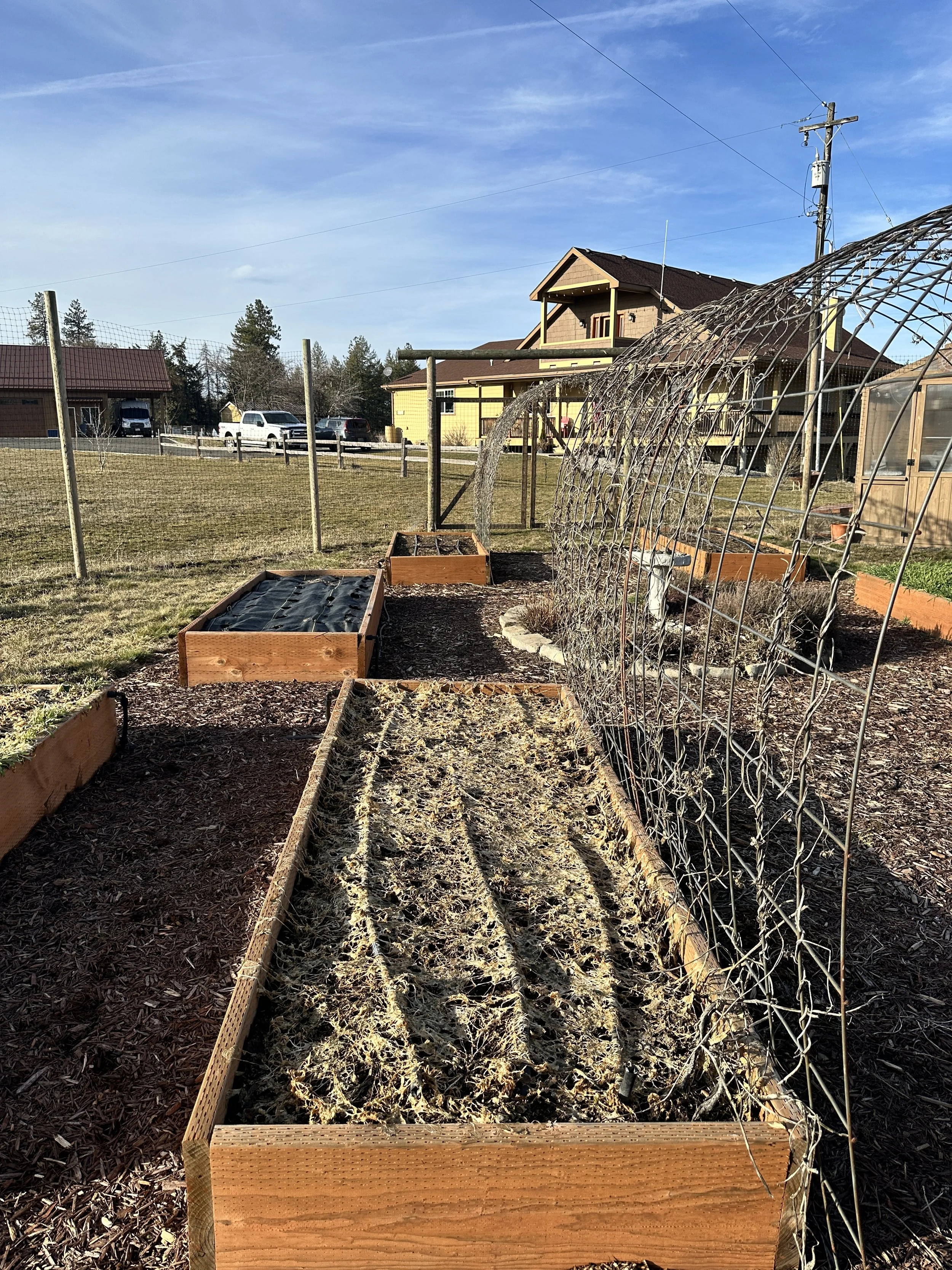 This bed was seeded with winter wheat, the one thing that is NOT supposed to completely die, even in the deep cold. But it’s quite a bit thicker. lusher, and greener than it is supposed to be for a cover crop!