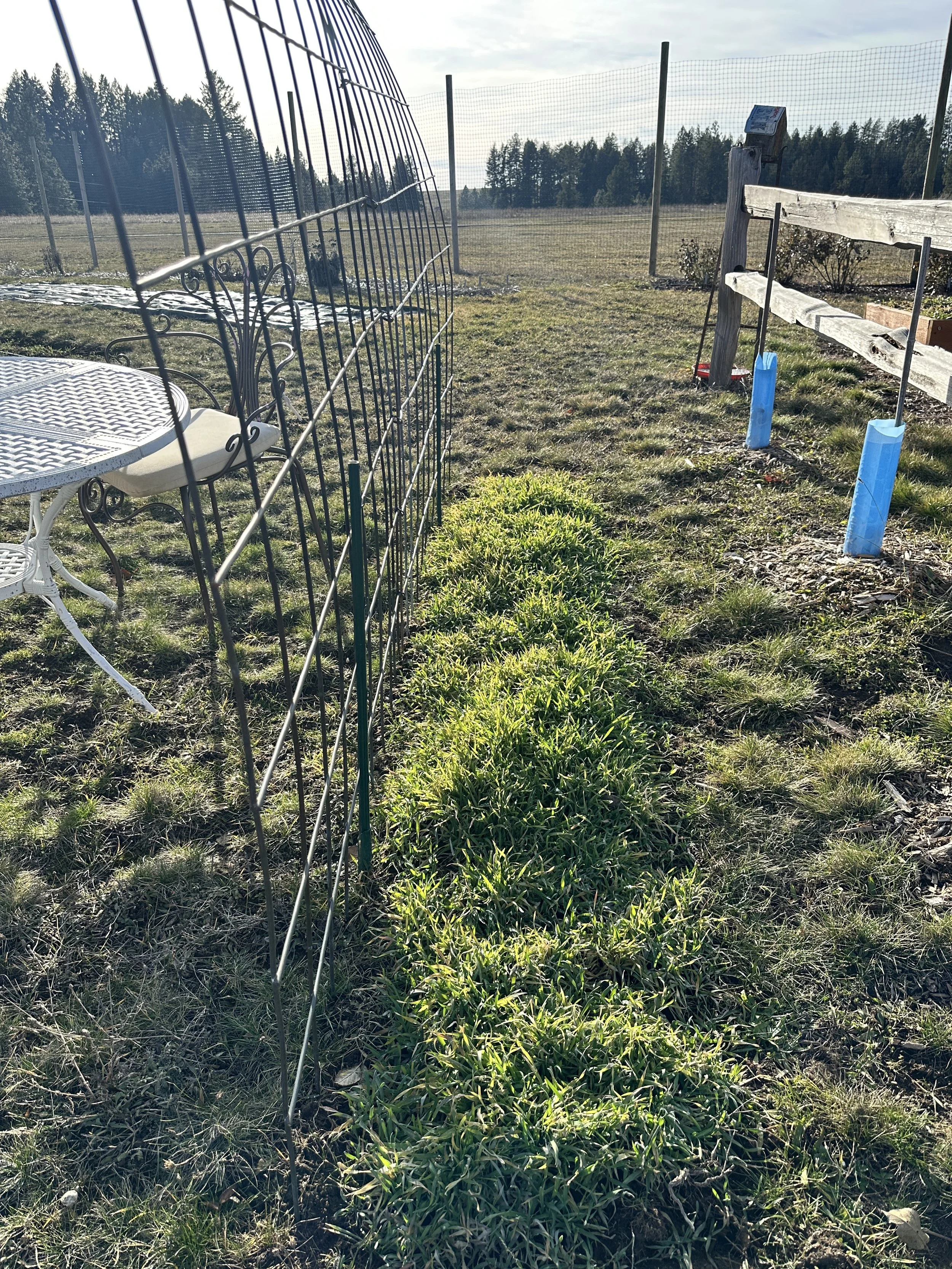 A little more winter wheat - since this is in the ground, we will till it in when May hits. This is where we will plant the vegetables that will grow up the new veggie trellis.