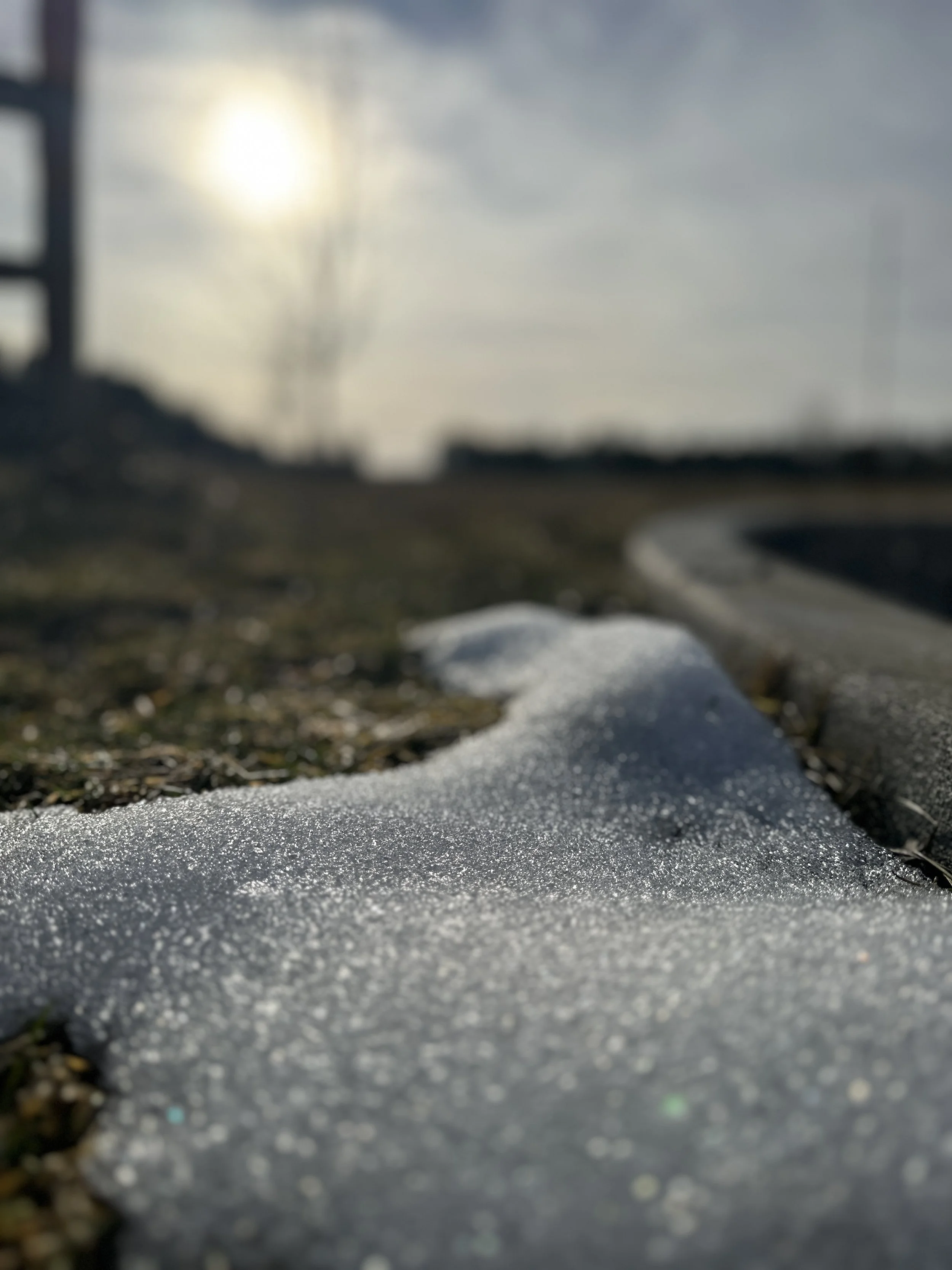 The one tiny bit of snow that still remains along the edge of the front driveway.