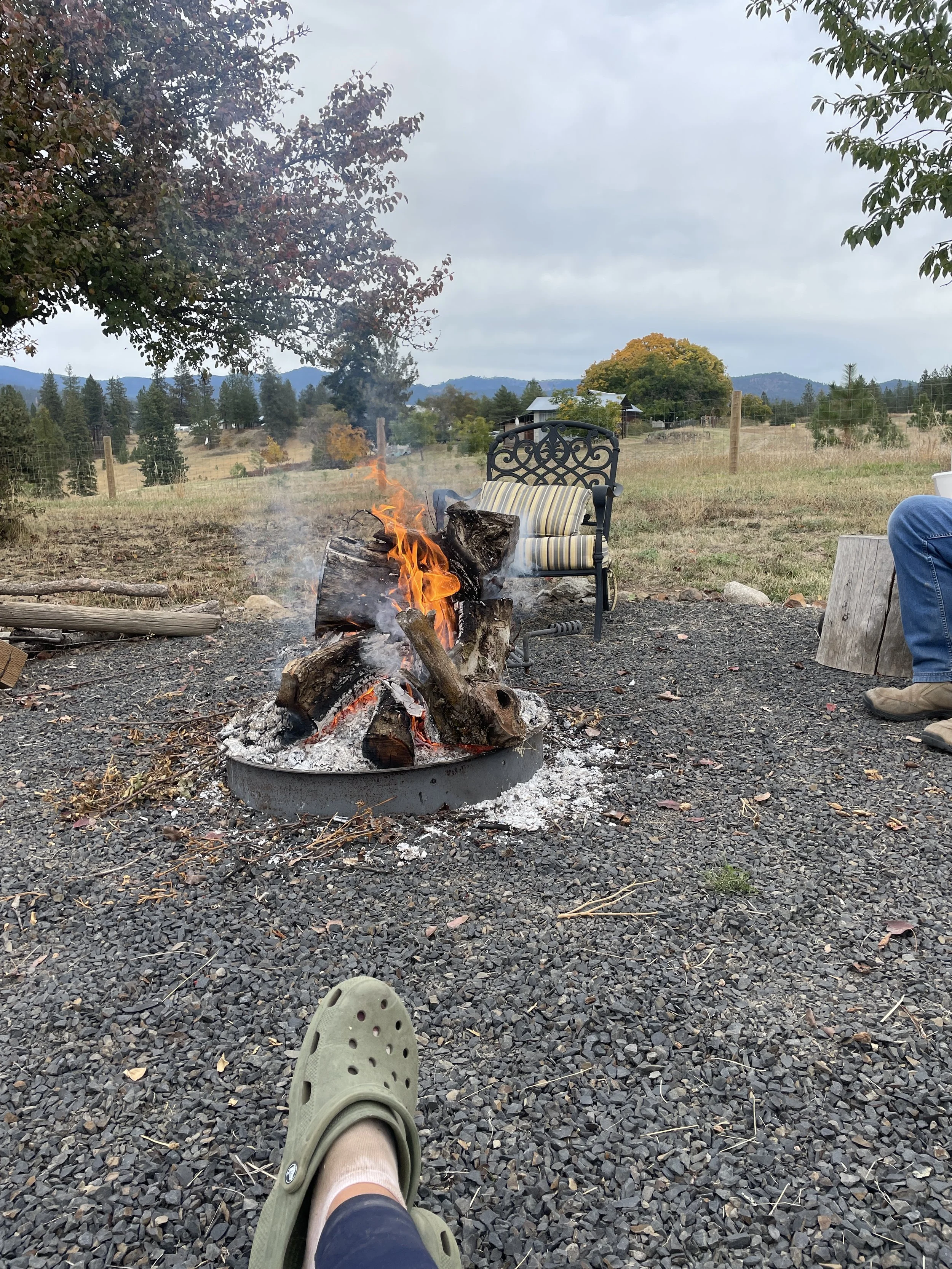And since the county burn ban was lifted a few days ago, we were also able to get some of our tree trimmings burned! The coals burned all through the night, even through the rain.