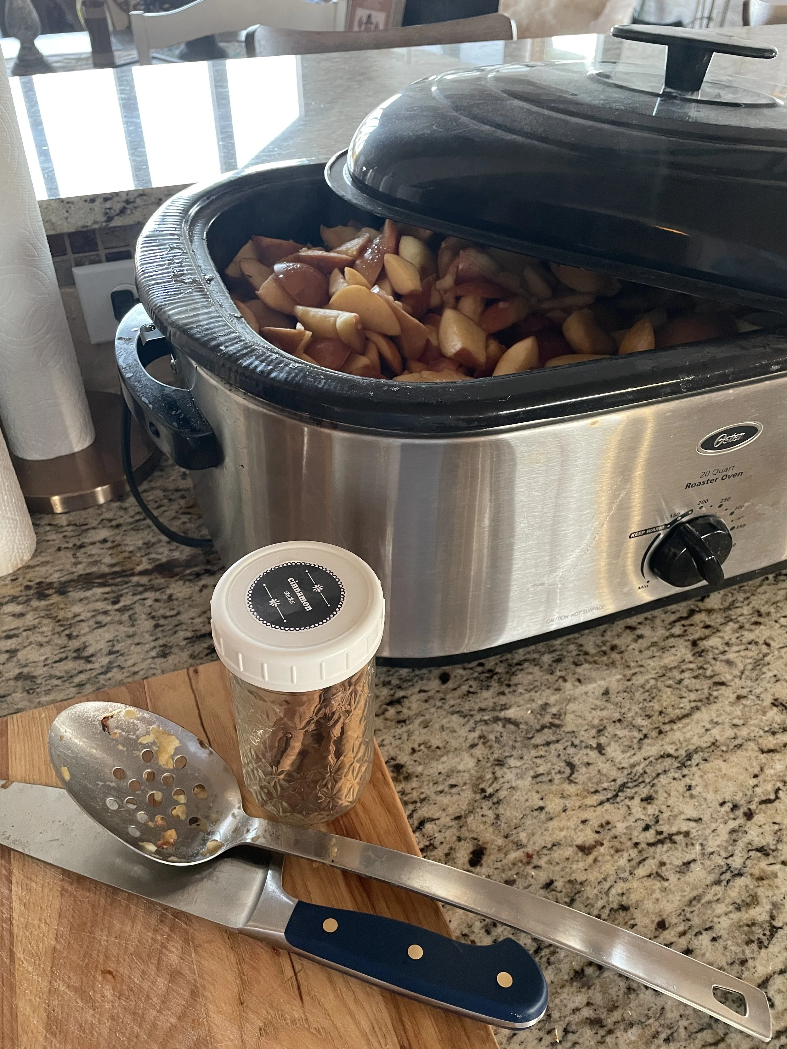 For the first, I cut up some of the apples I picked last month from a few of our front apple trees and set them to roasting: