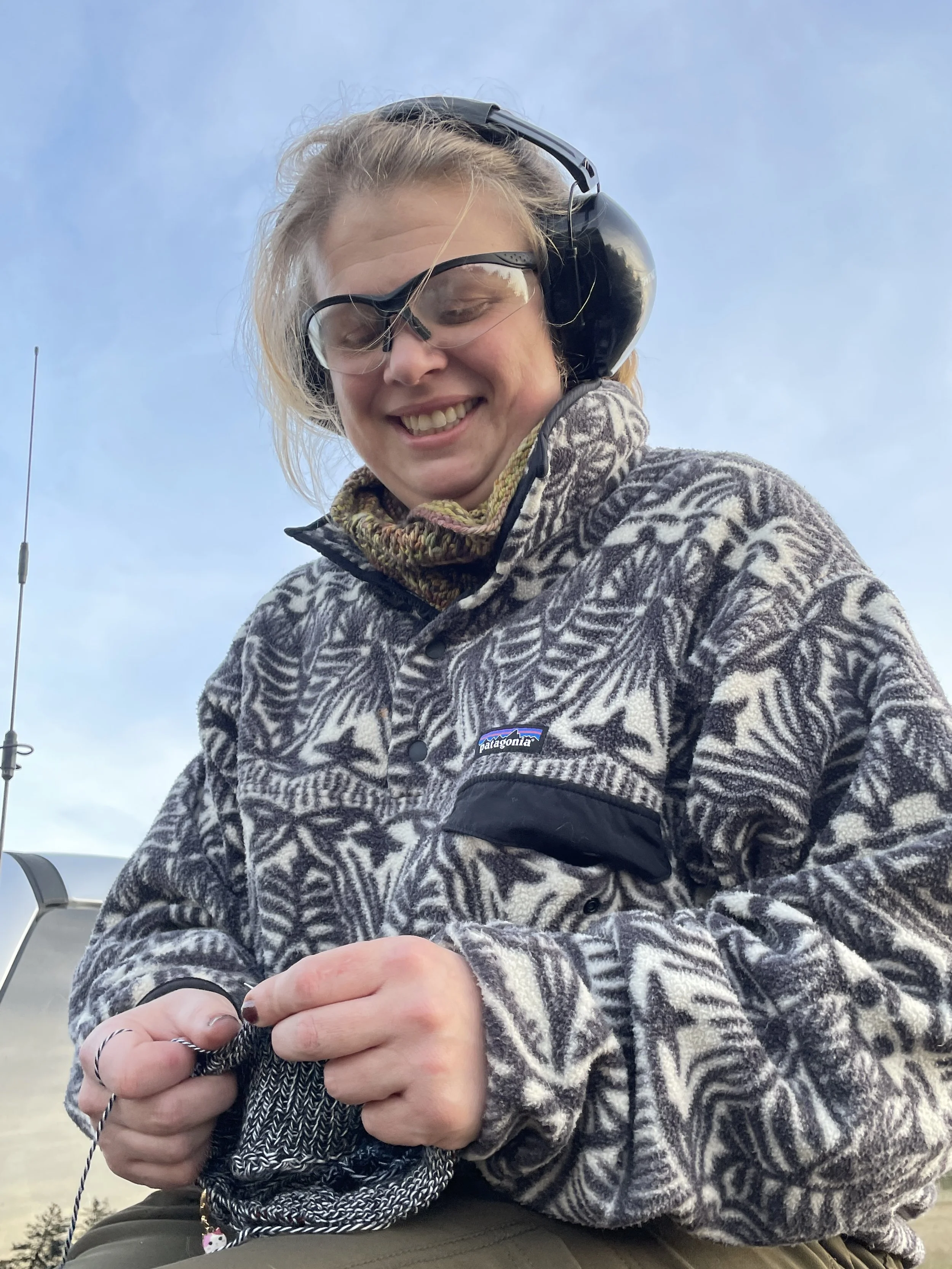 Montana is an expert at killing time during sports activities, after a childhood of being dragged around to her brother’s sports practices and games. So I wasn’t surprised to see she had her knitting with her today!