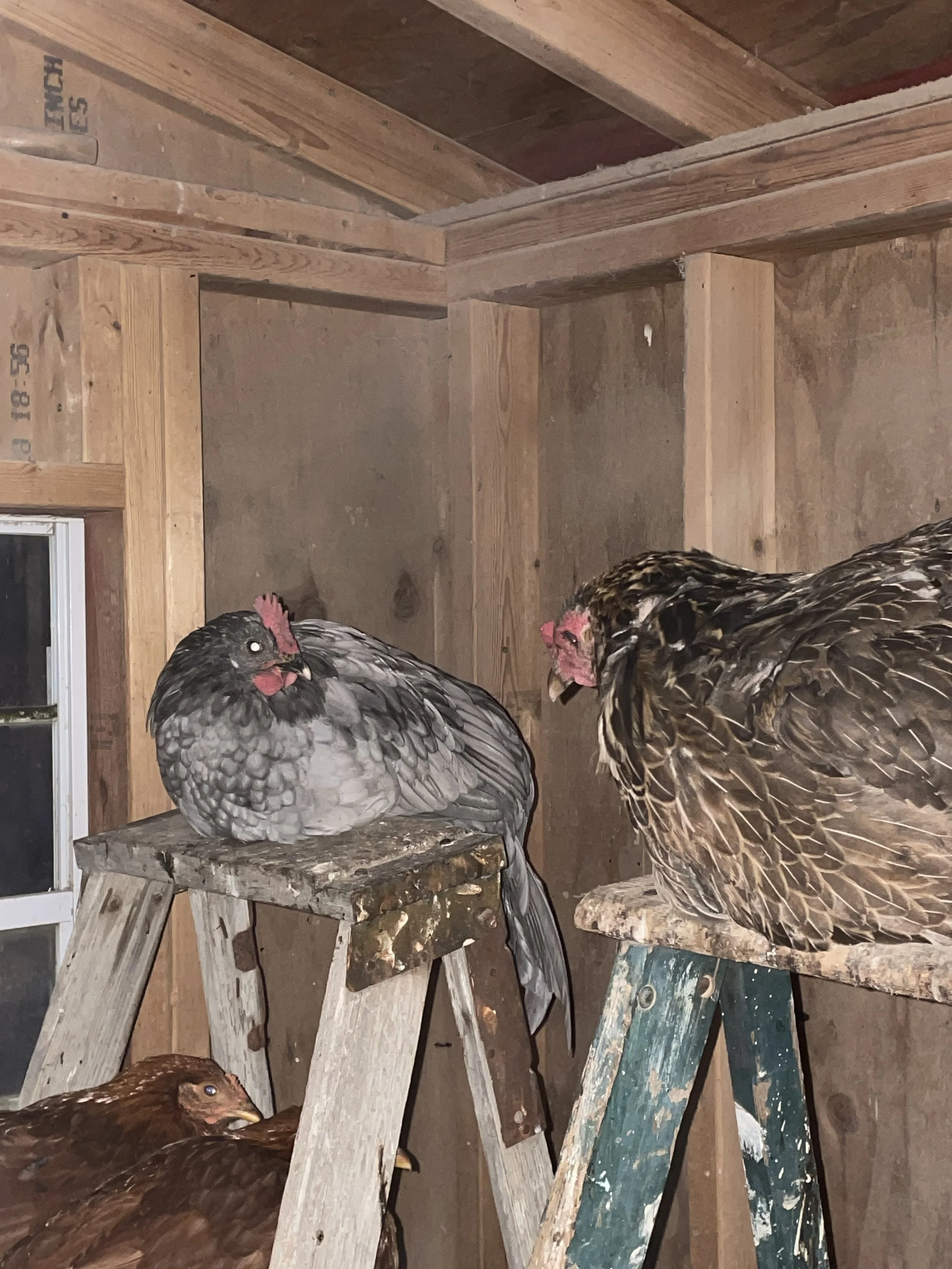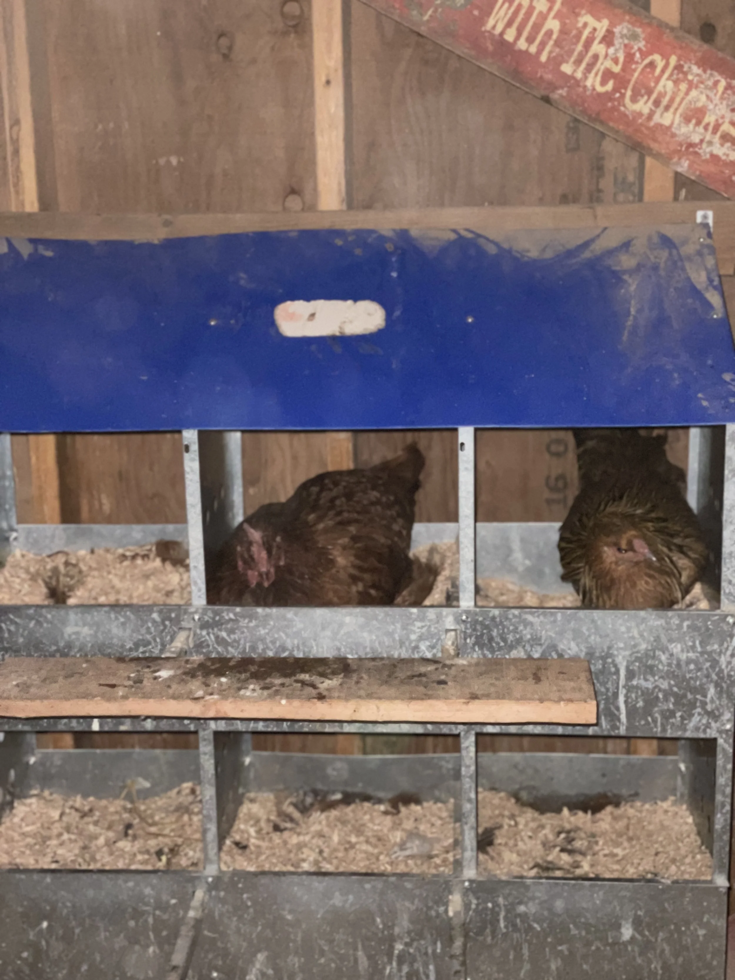 Three hens still like to sleep in the nesting boxes. It doesn’t really bother me, which is good, because I don’t think there is anything I can do about it!