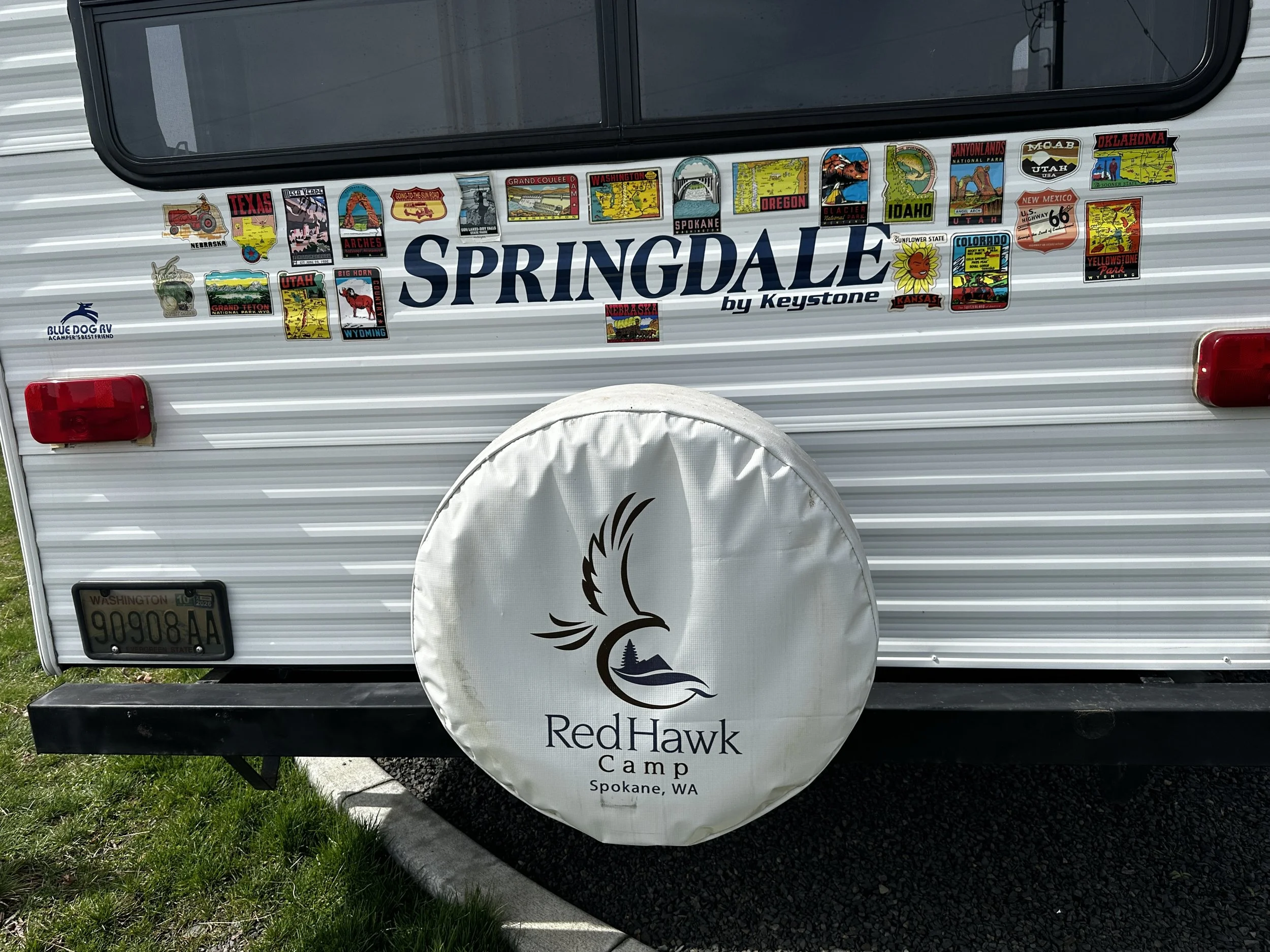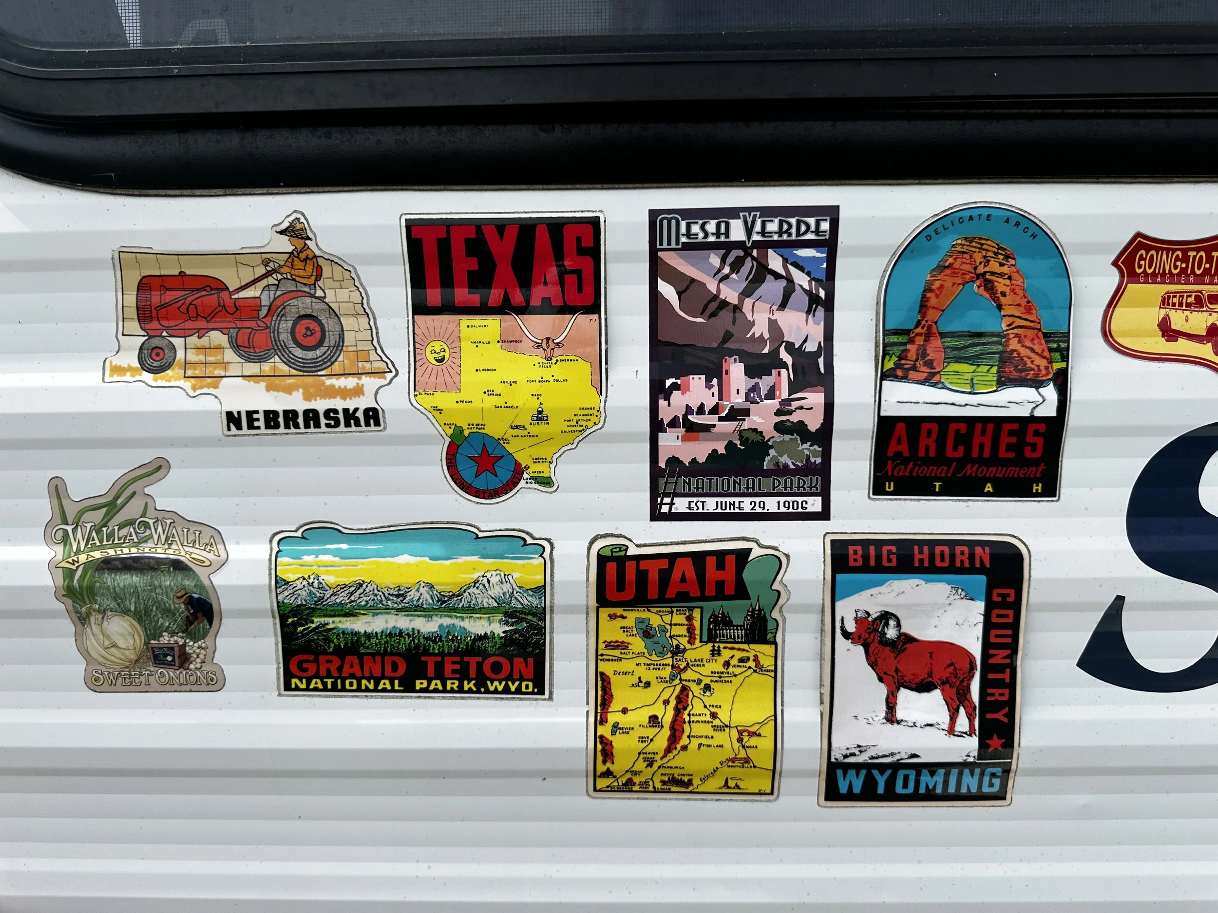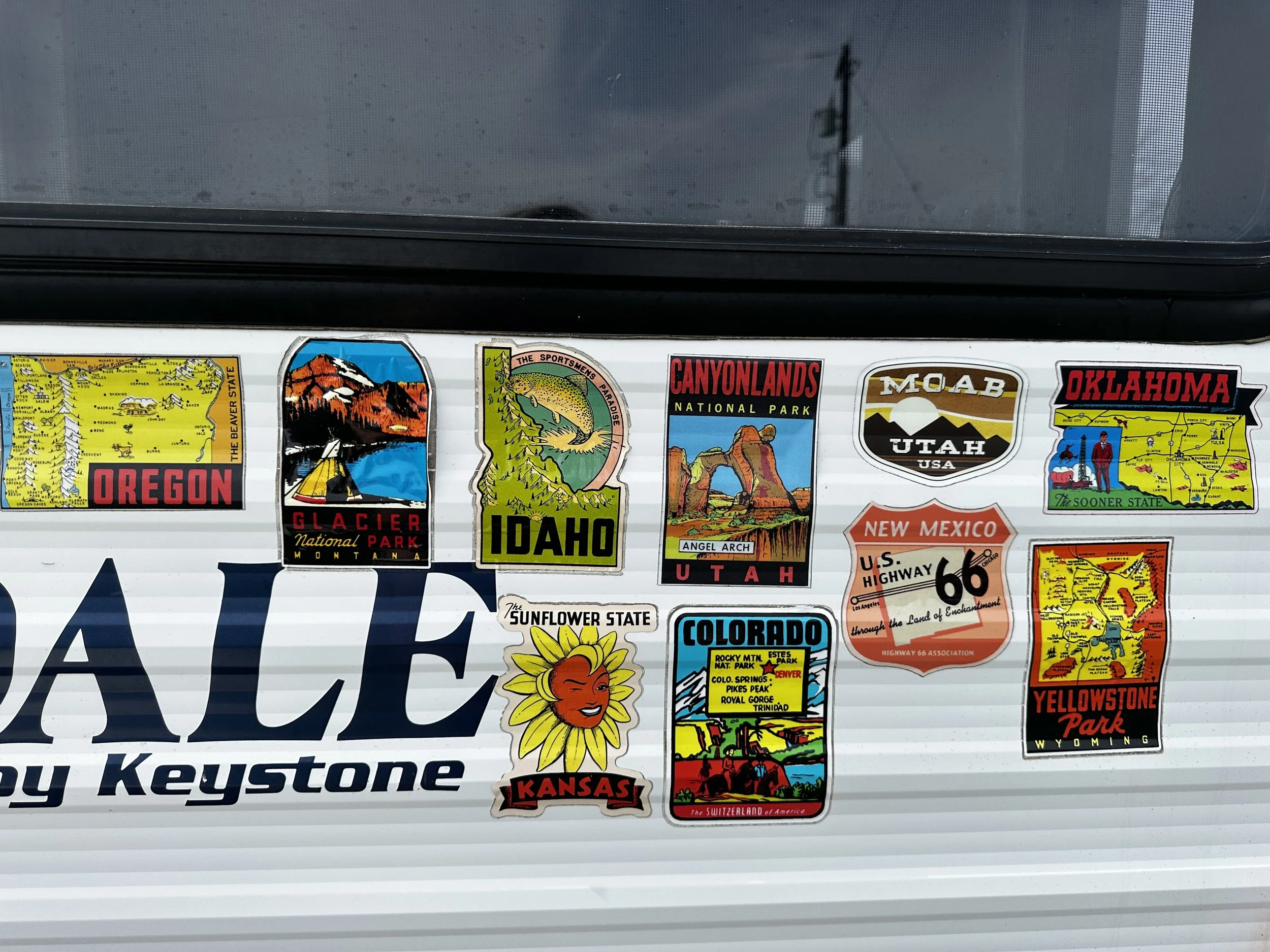 And then on Easter Sunday we cleaned up the old camping trailer and sold it. This was semi-emotional for us, because we really had fun in that trailer. We had decorate it up so cute in a National Parks theme and had taken it on many adventures. I took photos of the stickers on the back.