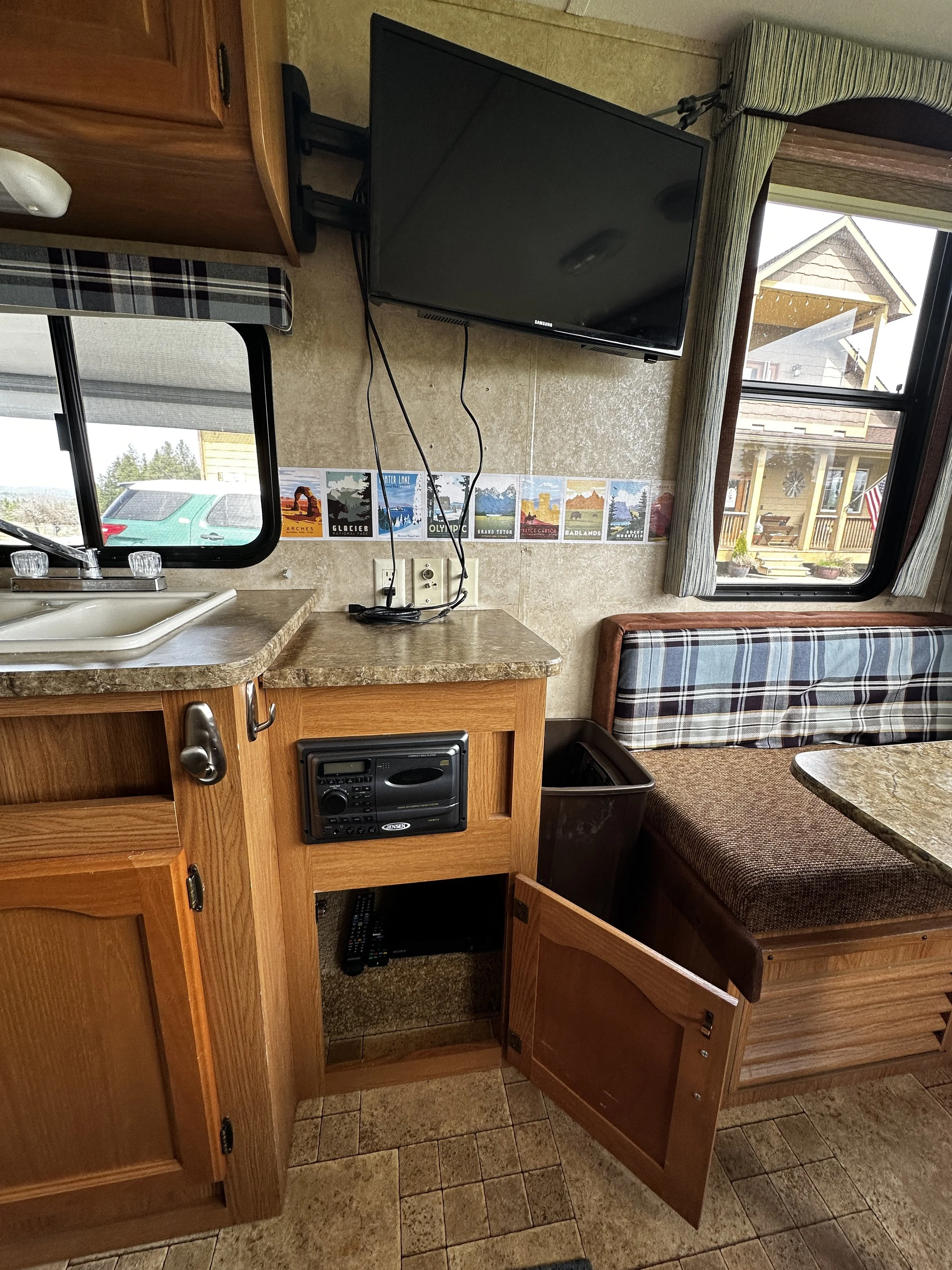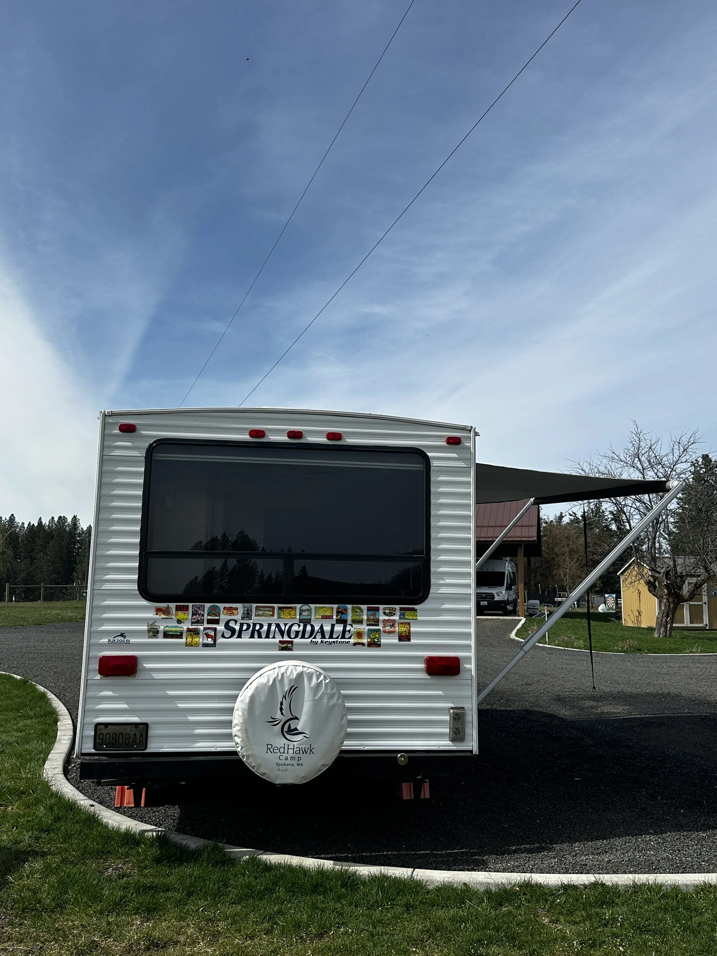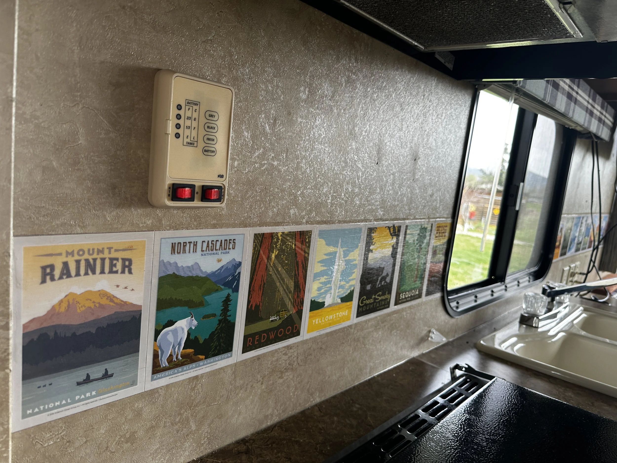 And then on Easter Sunday we cleaned up the old camping trailer and sold it. This was semi-emotional for us, because we really had fun in that trailer. We had decorate it up so cute in a National Parks theme and had taken it on many adventures. I took photos of the stickers on the back.