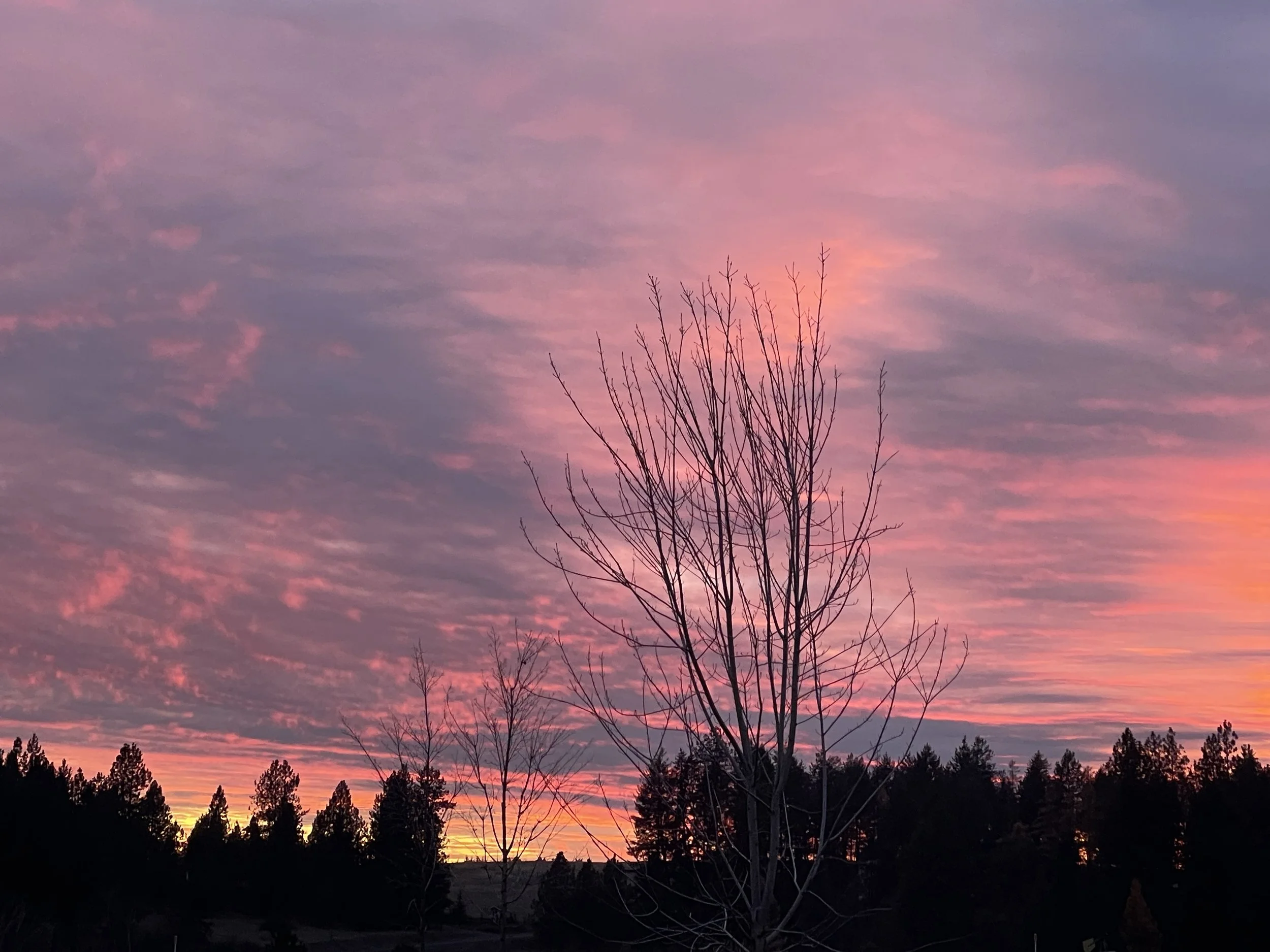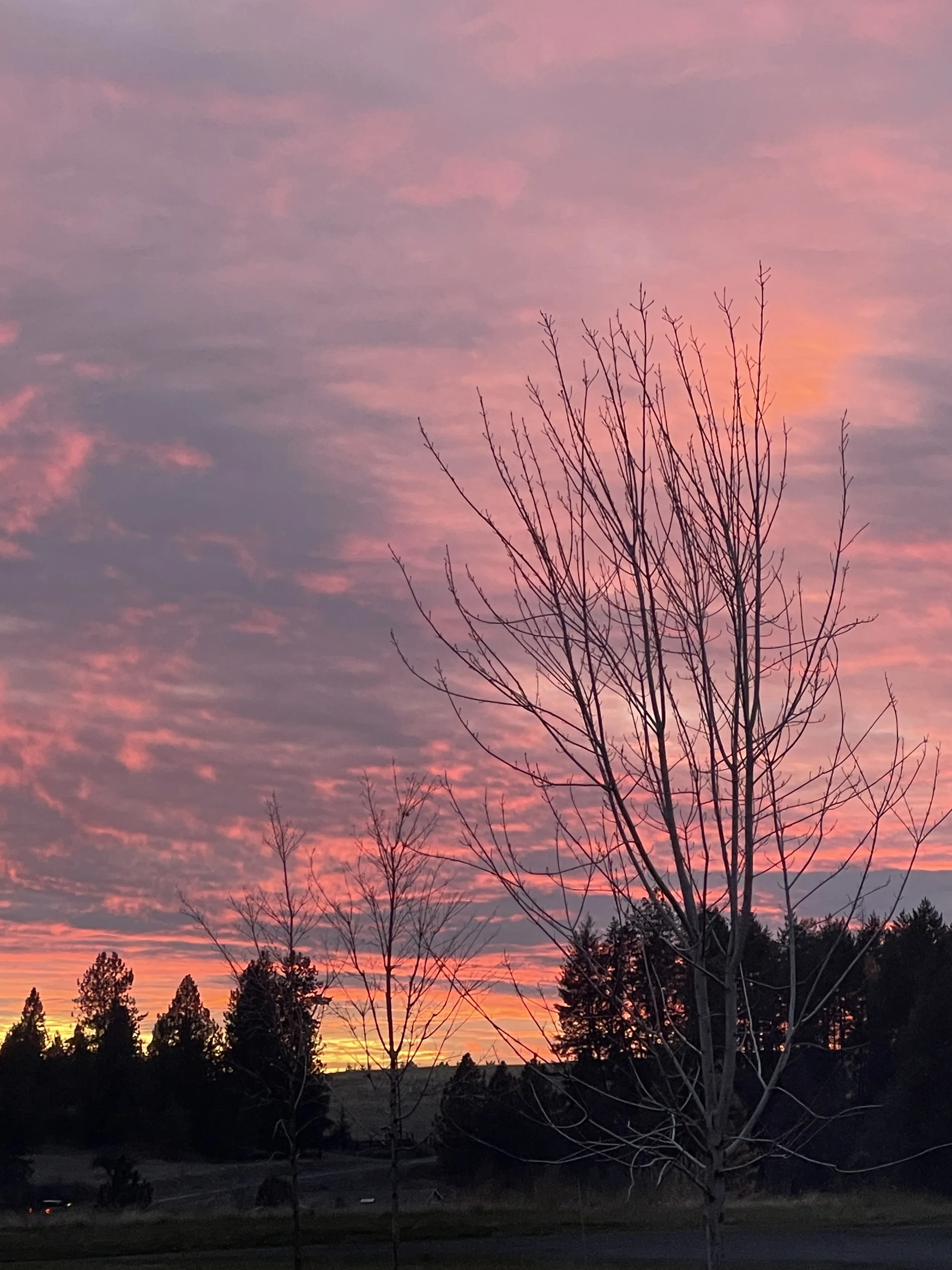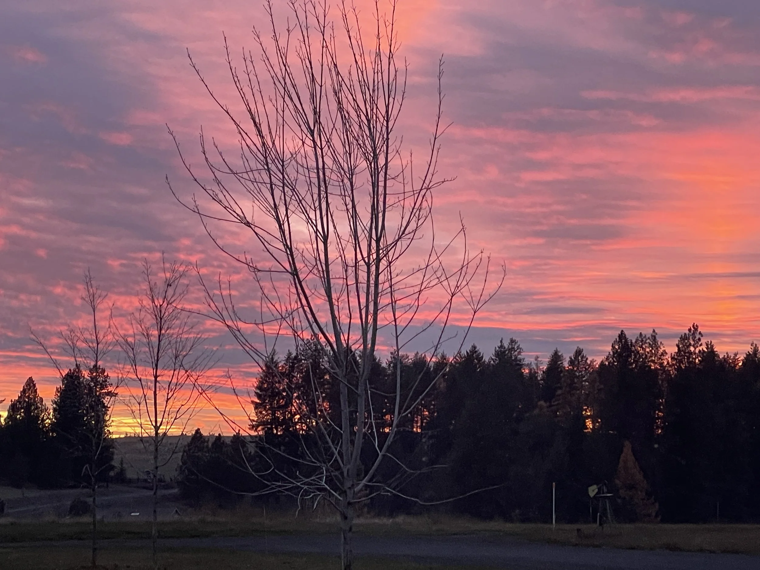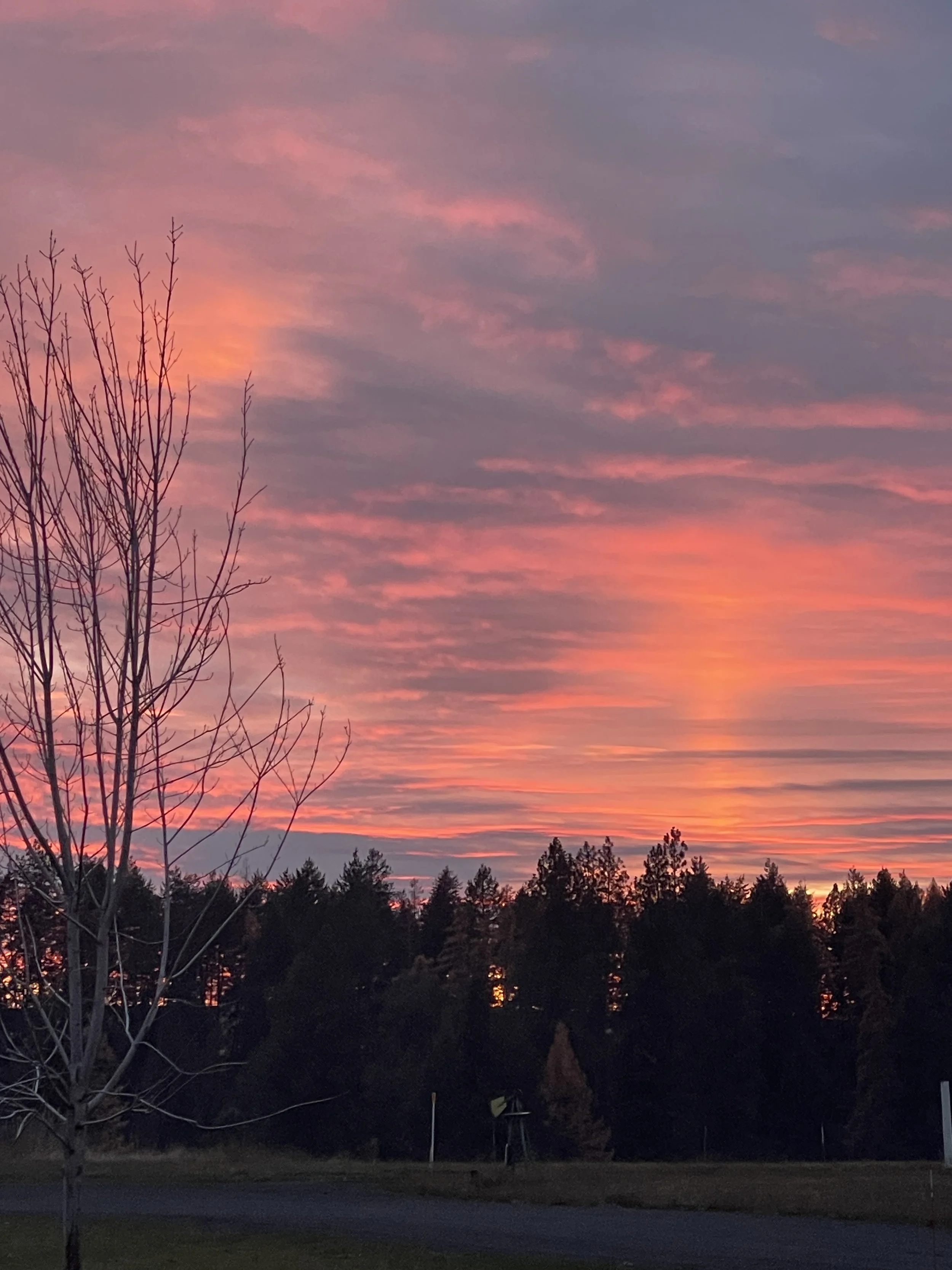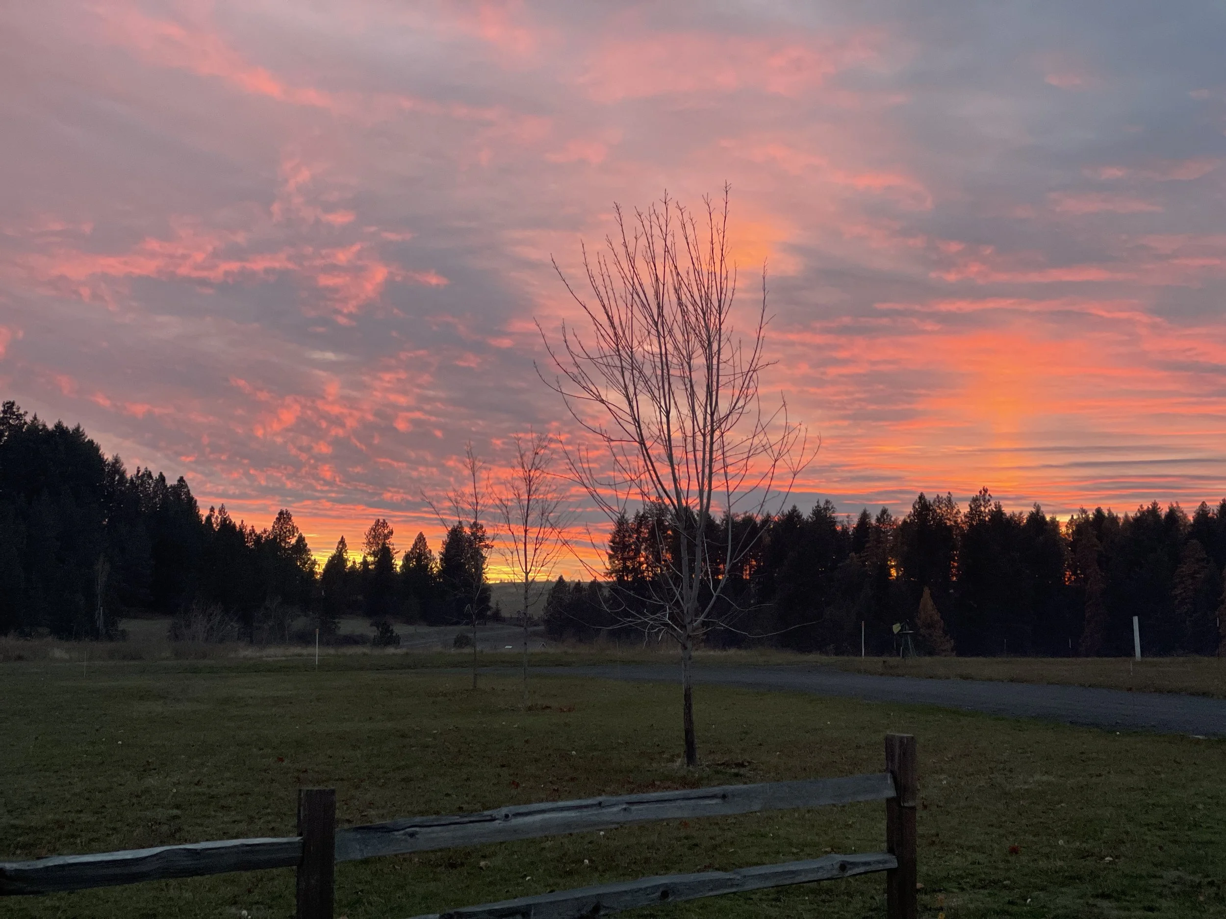Fire up in the sky, and fire down in the firepit! Montana and Elijah put their fire-making skills to use to burn some of our miscellaneous trimmings. Nice evening for both!