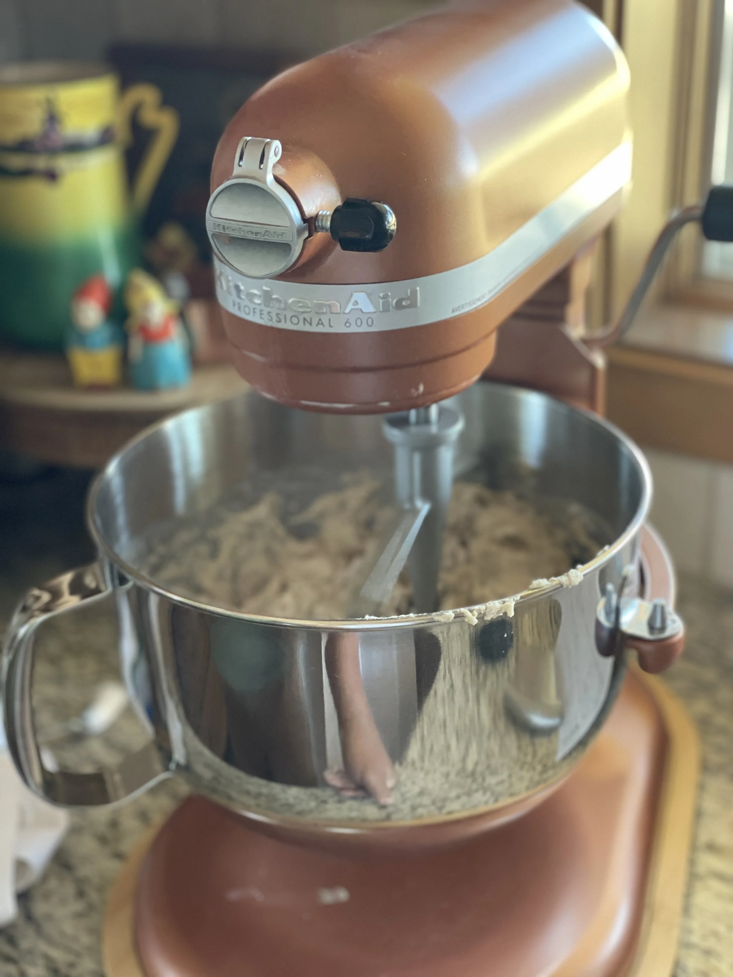 Yesterday we sliced our butter, and Steve also picked up his bulk grain order (though now I’m pretty sure we’ve joined a MLM cult in the process, it’s easier to do up here than you’d think). So I found him at his baking station this morning earning his keep! I’m just fascinated with his process.