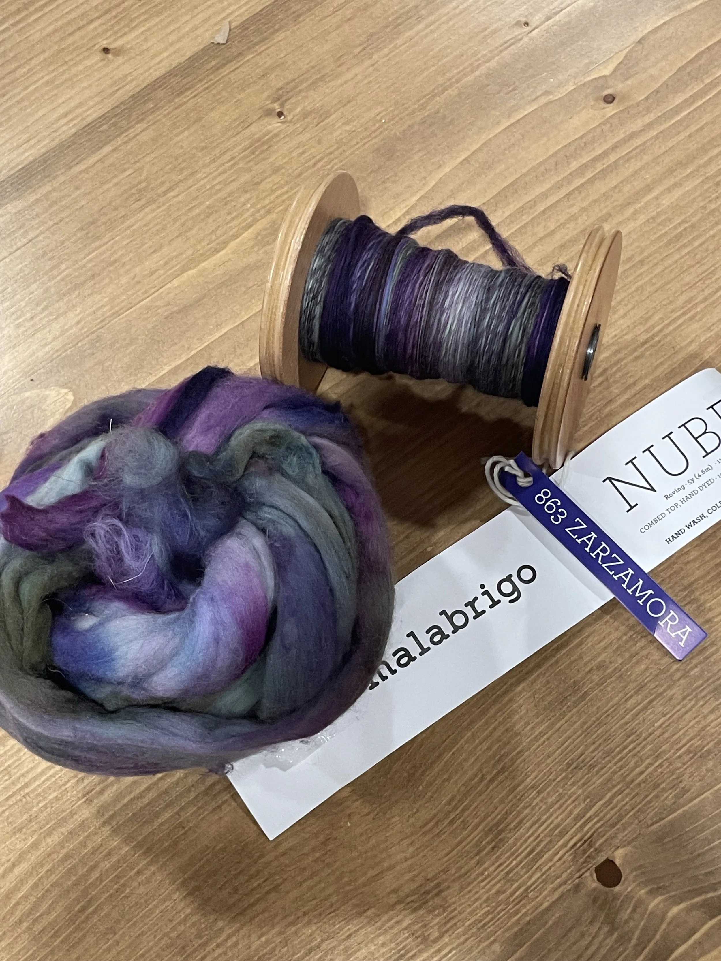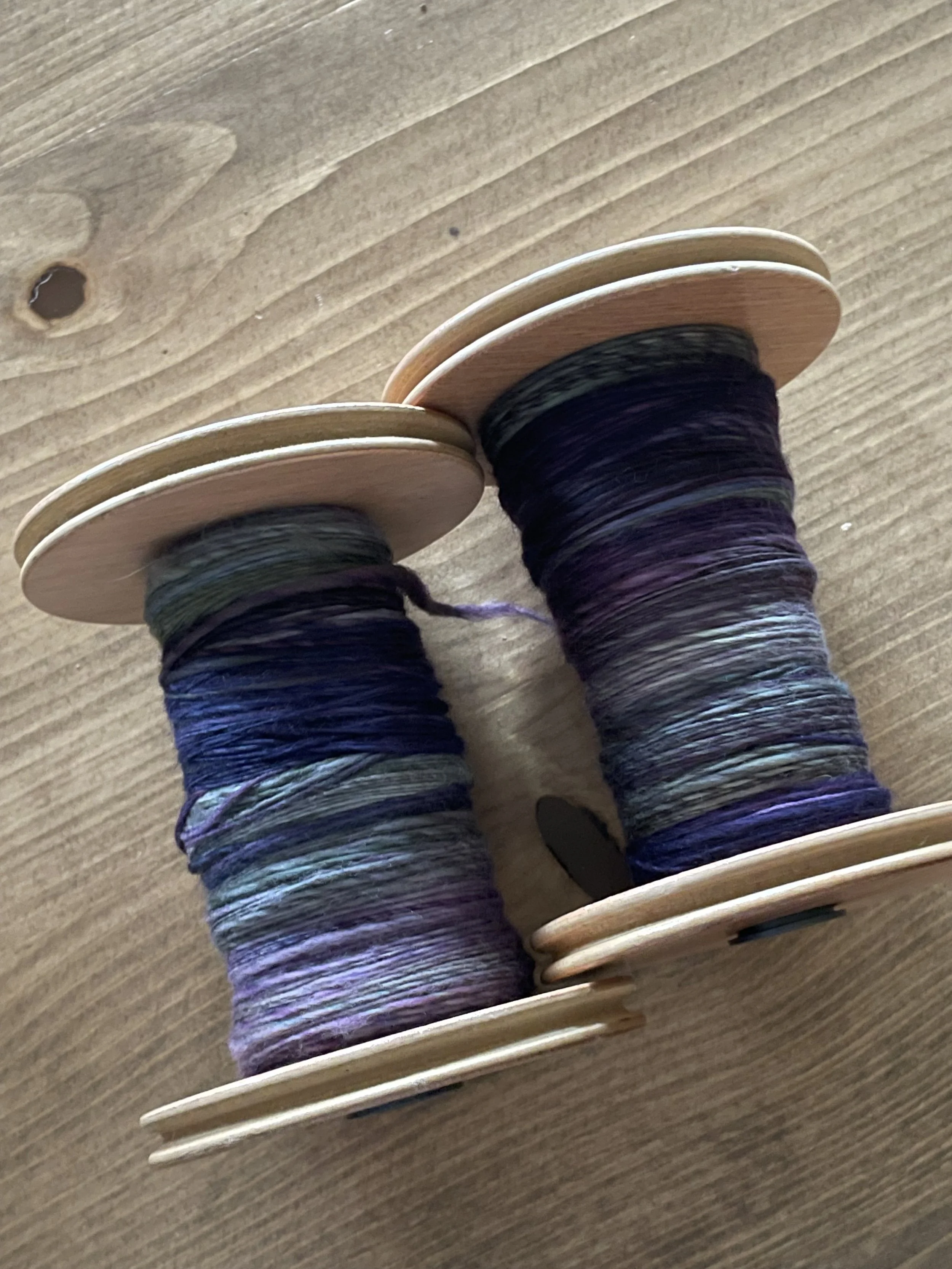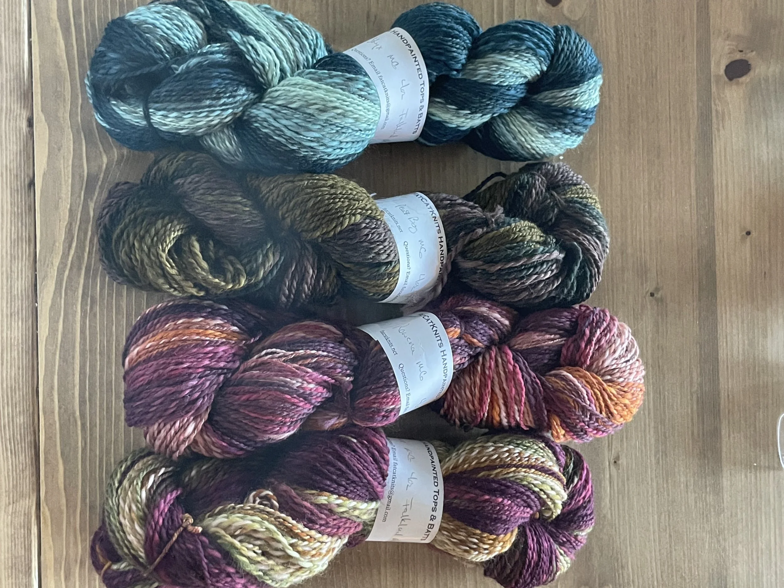 I asked Tana to share before and after photos of some of her recent spun creations. These were all made from pre-dyed wools she purchased. She apparently has a project that uses small amounts of many different yarns, so these will be perfect!
