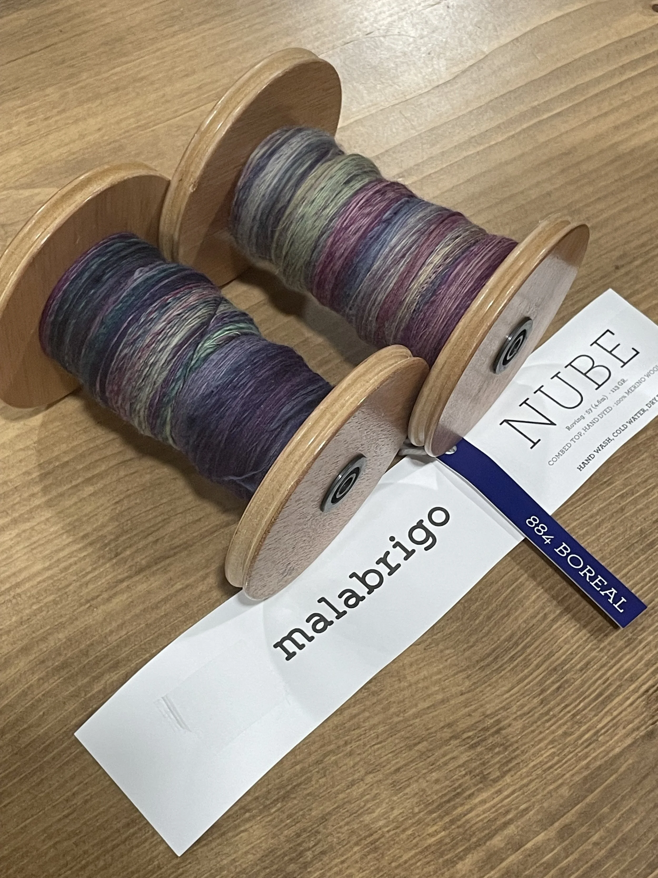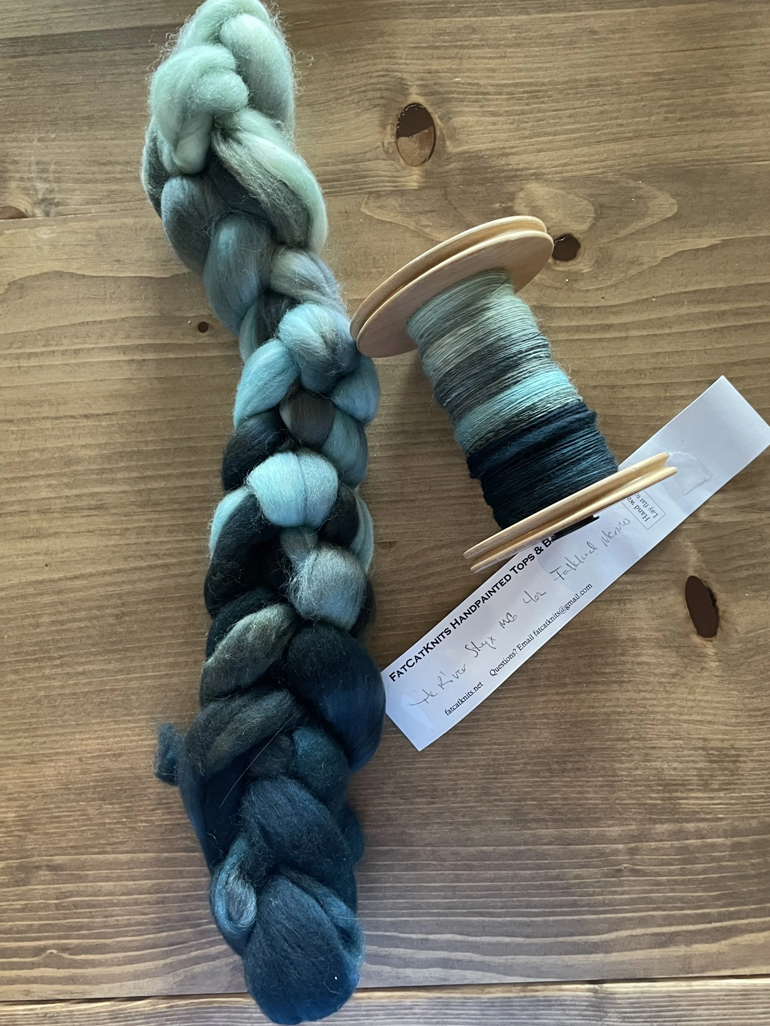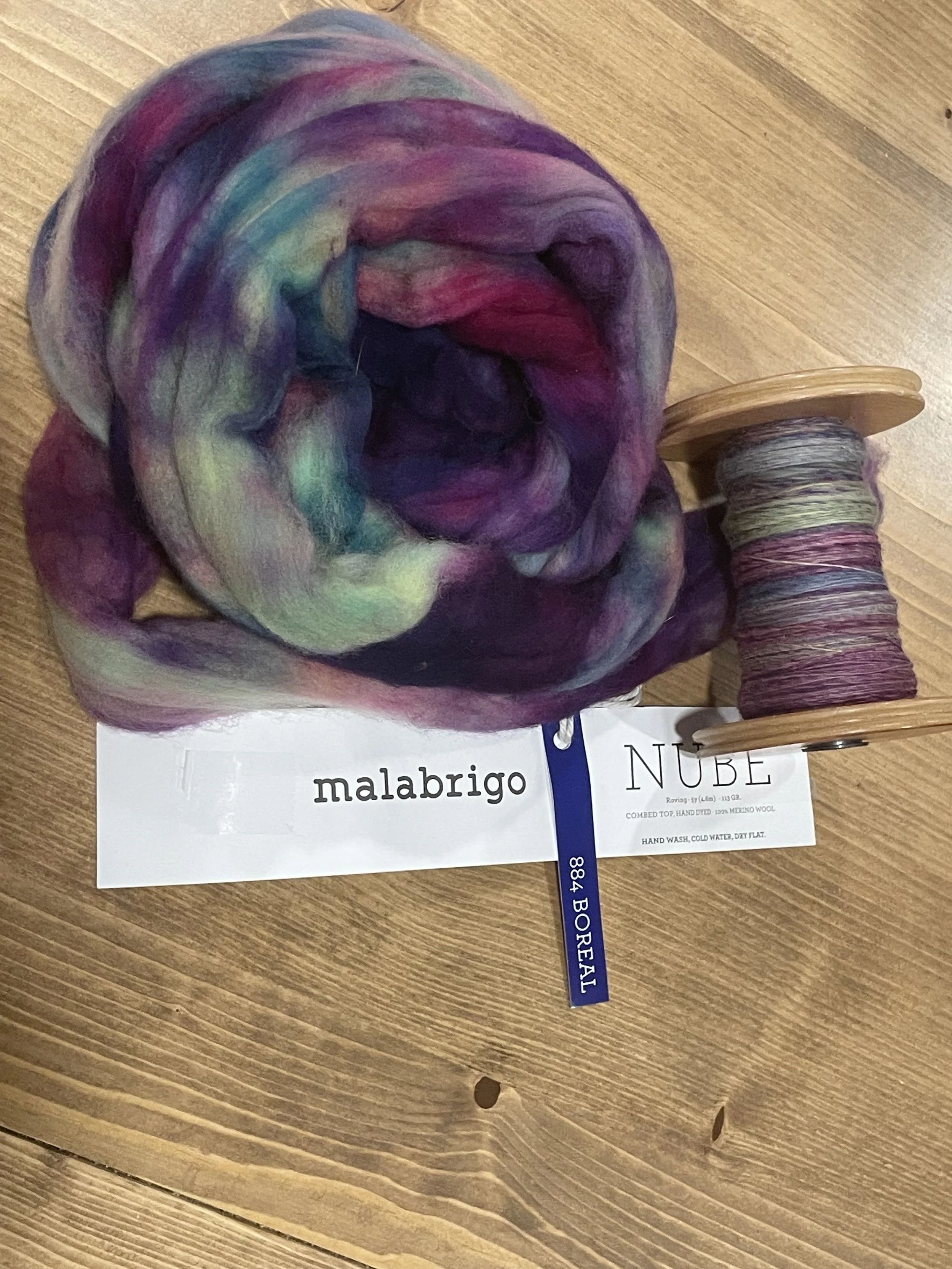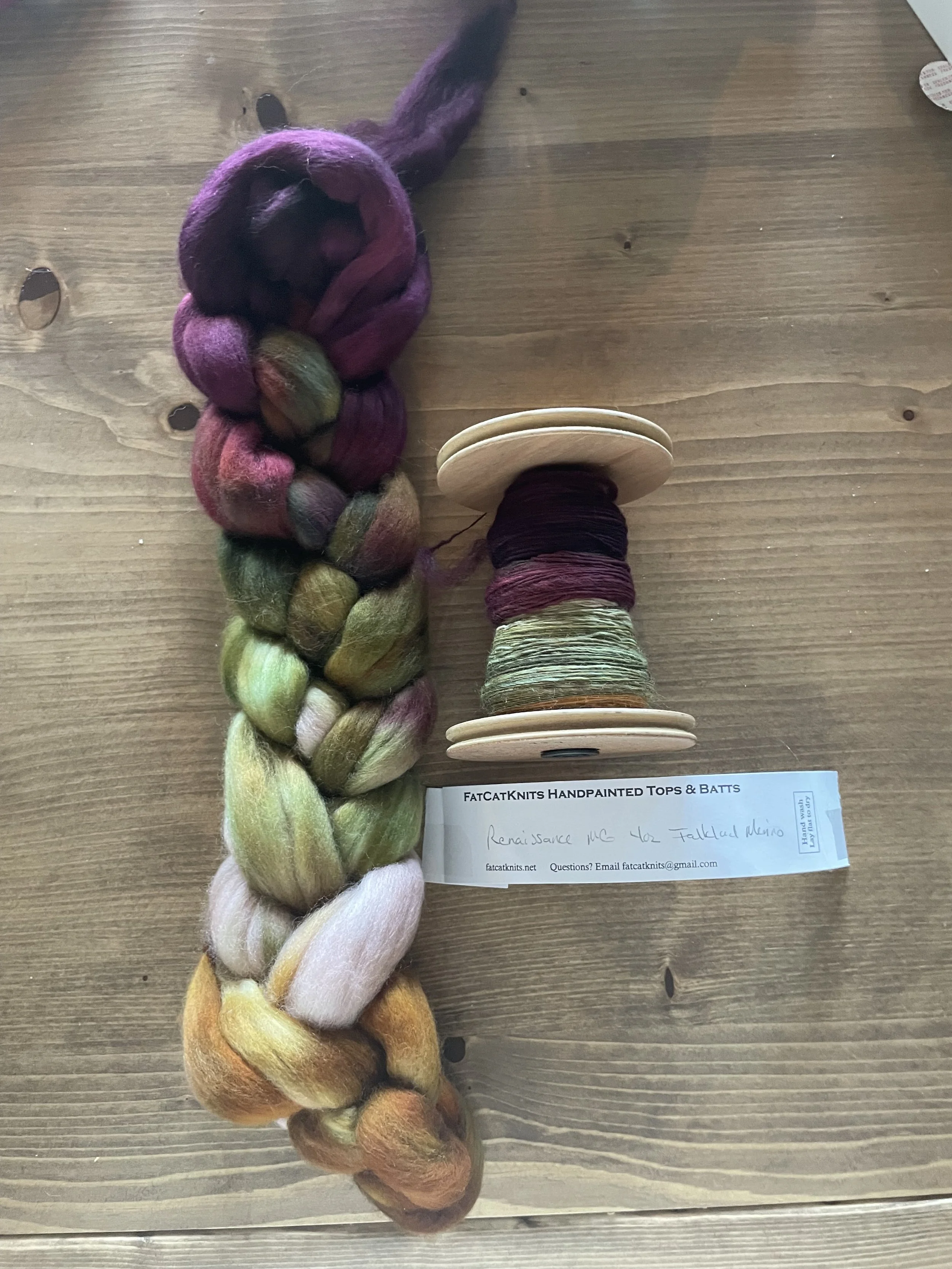 I asked Tana to share before and after photos of some of her recent spun creations. These were all made from pre-dyed wools she purchased. She apparently has a project that uses small amounts of many different yarns, so these will be perfect!