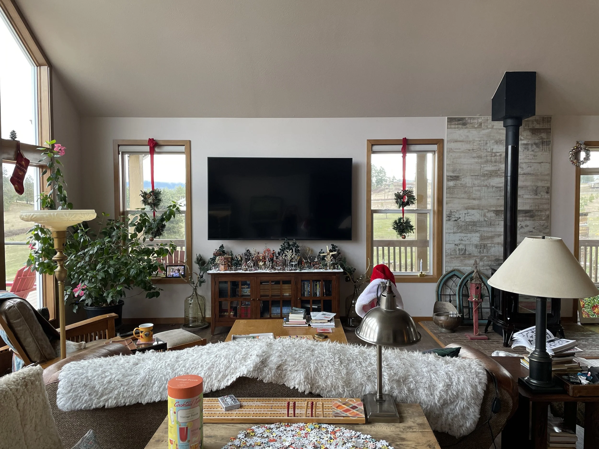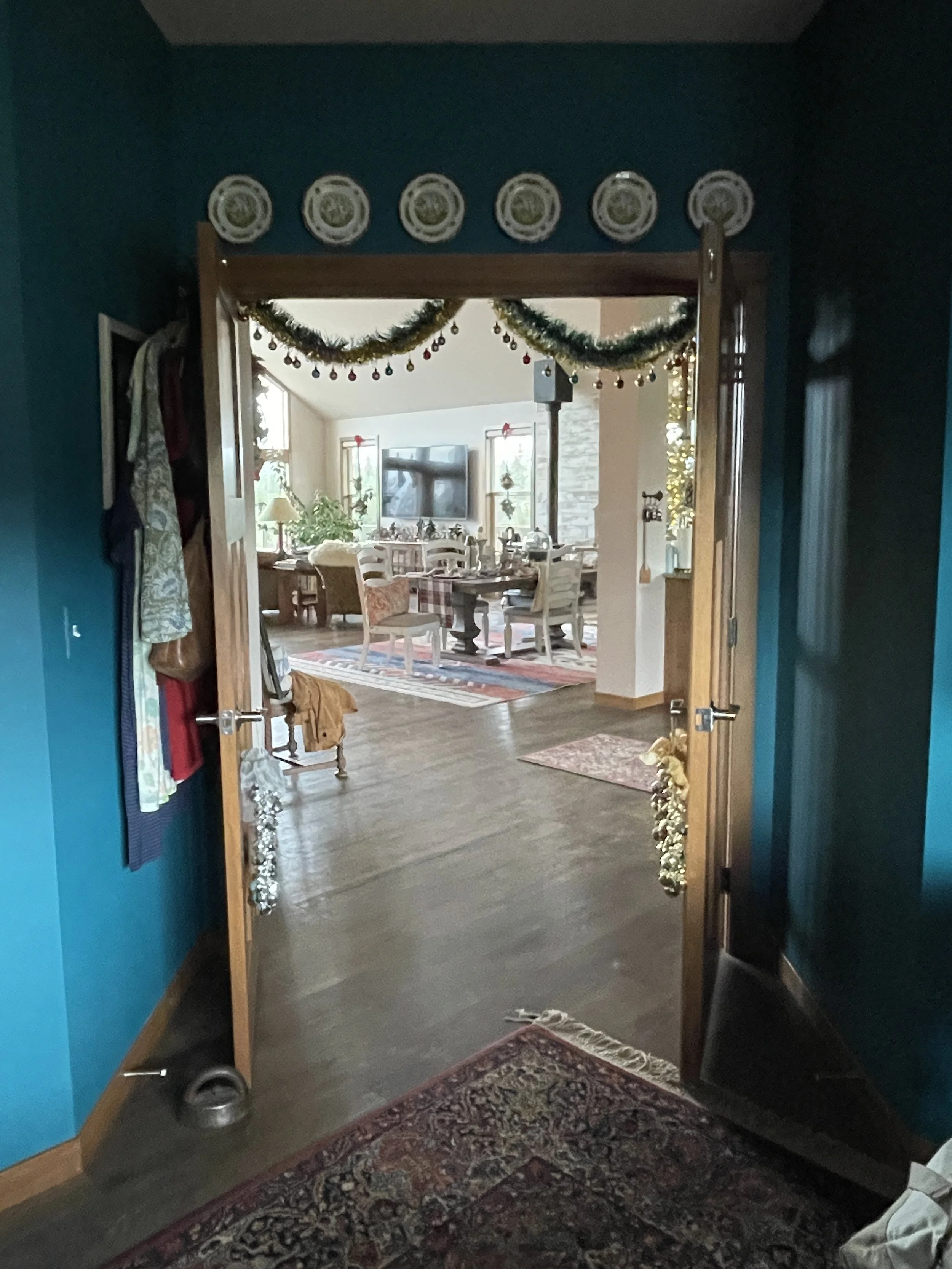 I took some daytime interior photos for my local drapery maker to help them prepare for an upcoming consultation, so I decided why let perfectly good pictures go to waste? So I took a few more, and here is our little Christmas house this year!