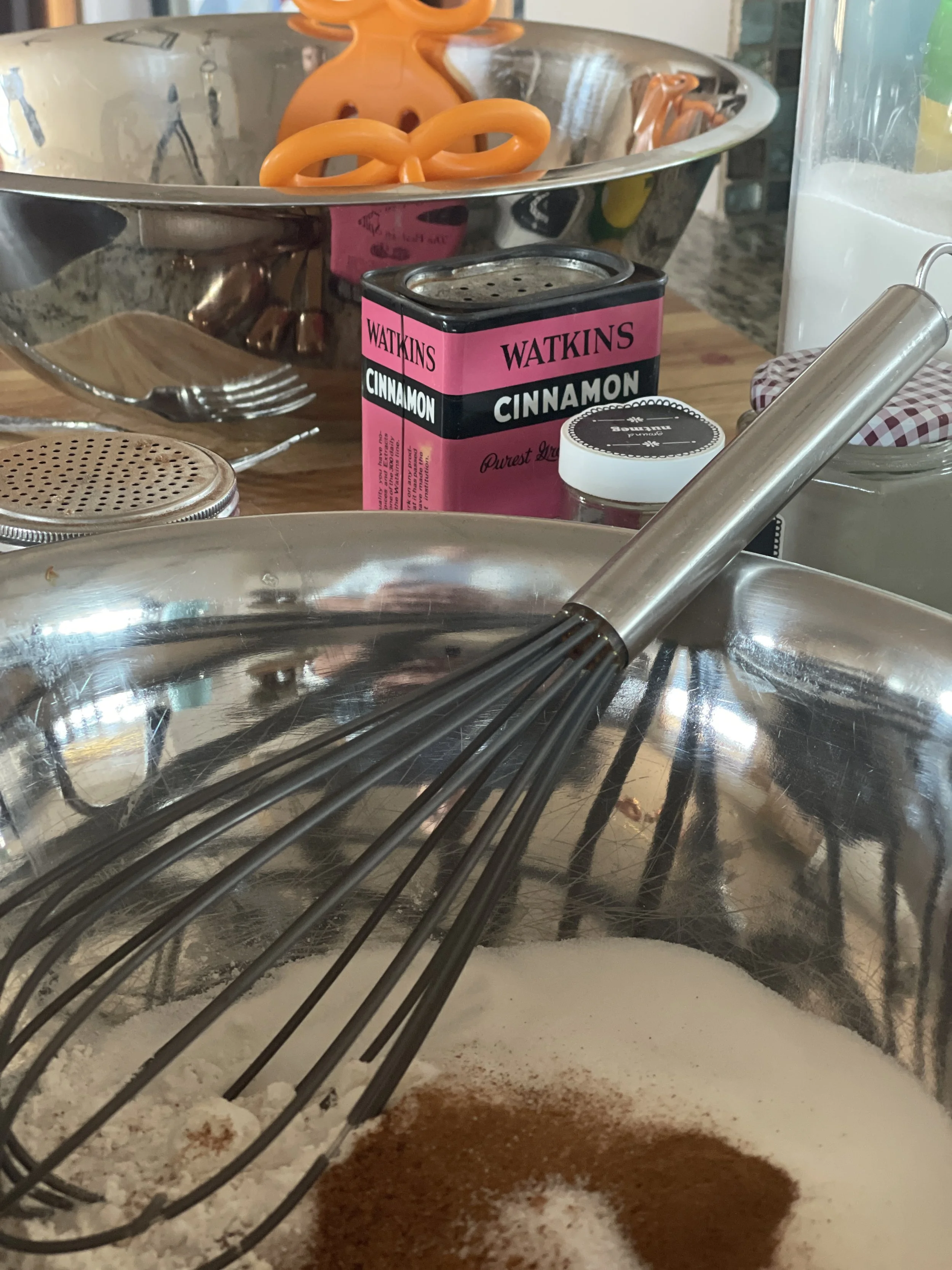 Whisk together some flour, sugar, cinnamon, nutmeg, and salt…