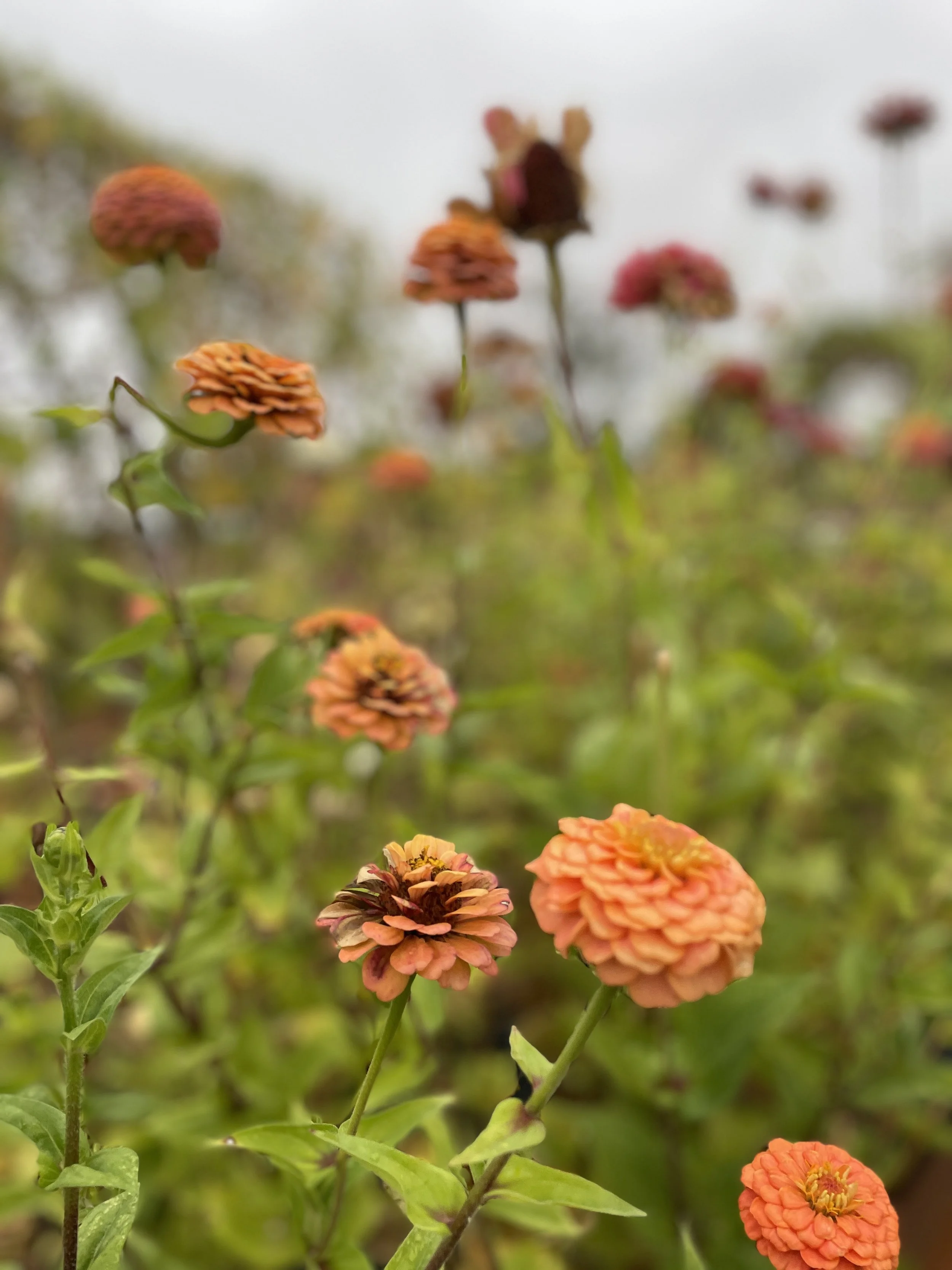 The last of the zinnias as brown becomes their dominant color. Love this flower above all others.