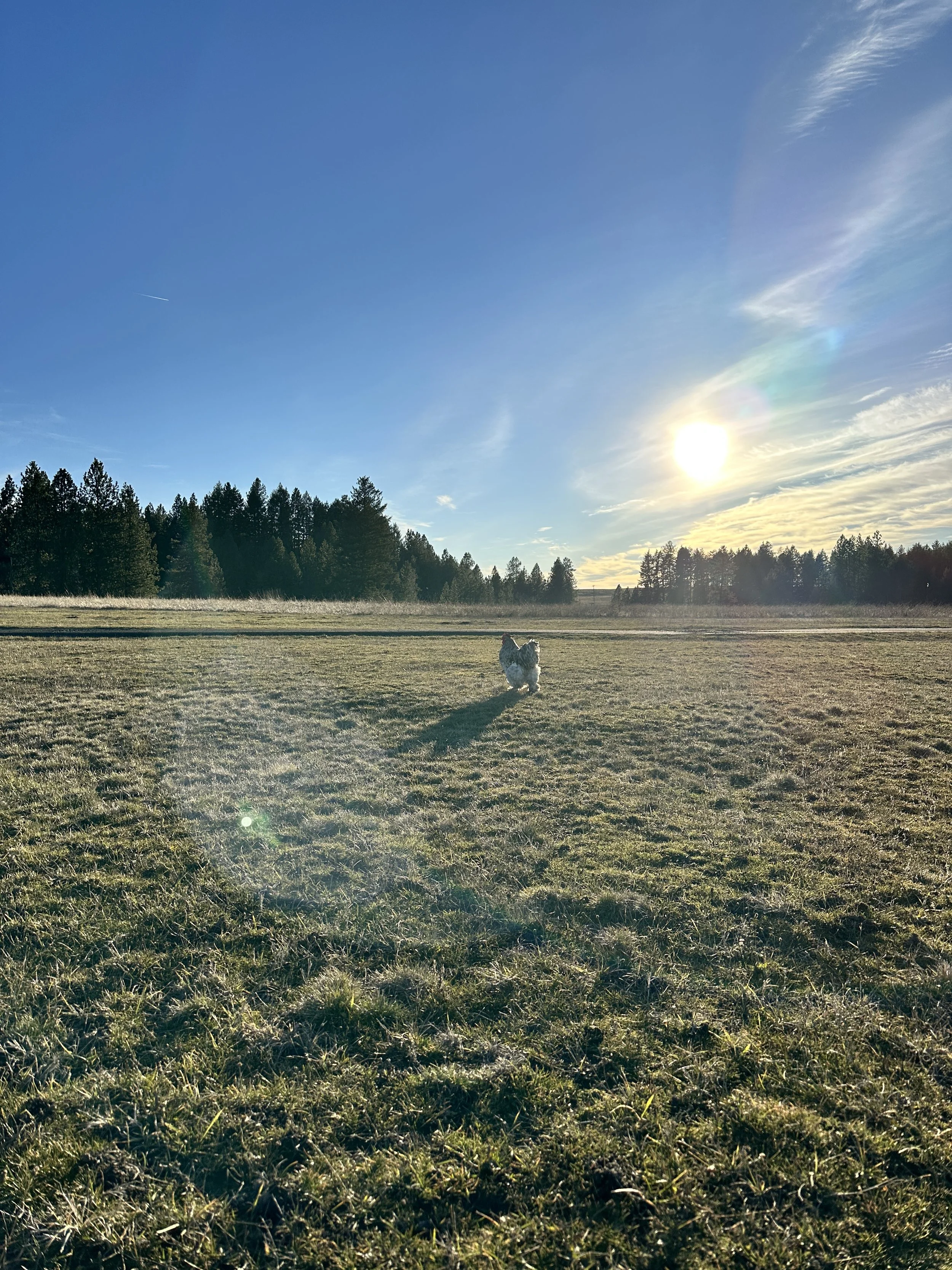 Unfortunately he didn’t seem any less stressed up there by himself. At about 4pm I was trying to catch him to bring him back down with the other chickens, and instead he took off running the complete wrong direction into the front field. I had to enlist Montana’s help again to wrangle him back the right way. The photos below are of his escape.