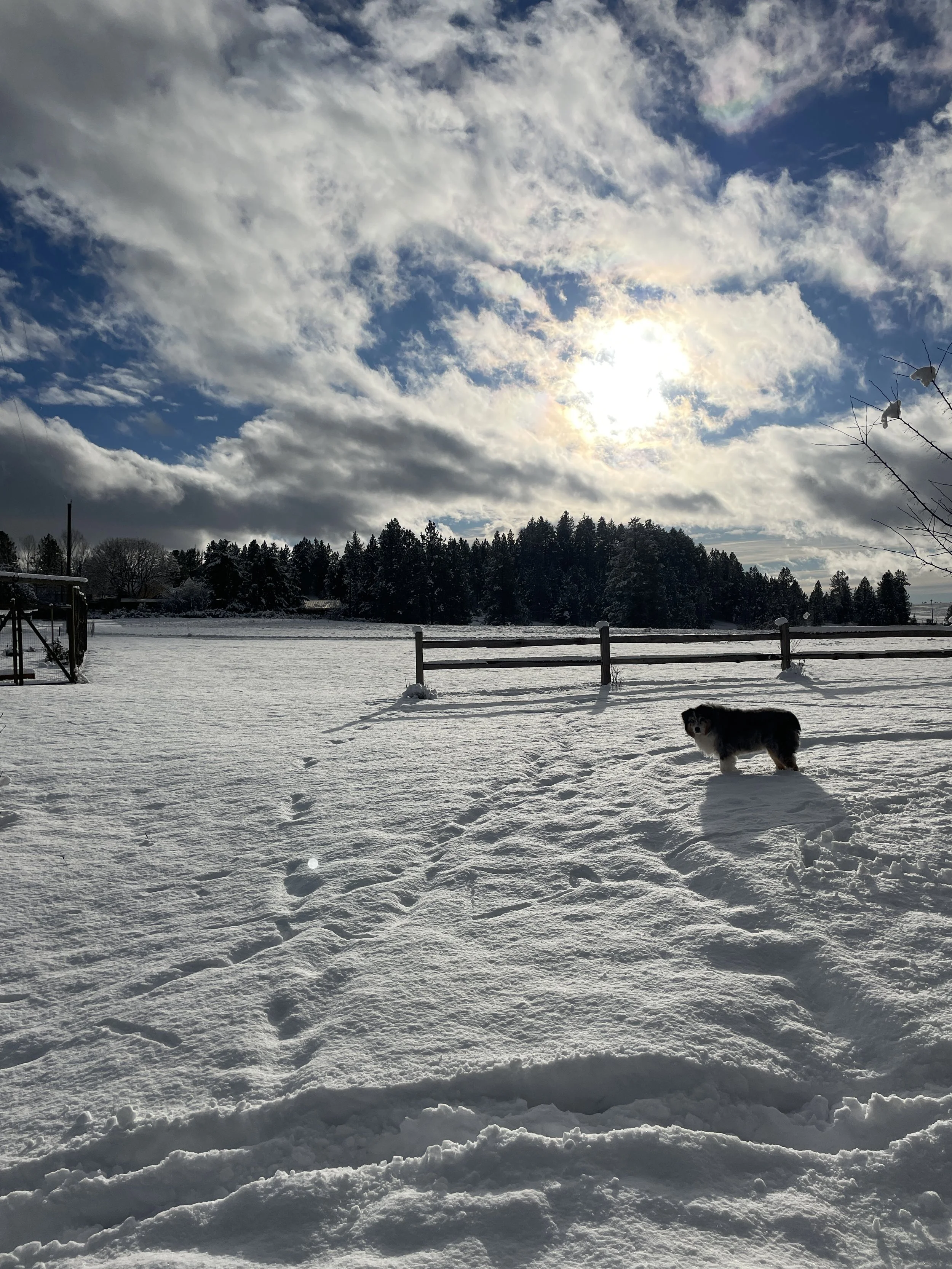 Snow and sun Jan 9 Written By Dawn Keig There is nothing better than a sunny day after a nice snowfall. Blue sky and a little sun peeking out over white fields is calming and cozy, especially when it’s not too cold and there is no wind mucking up the beauty! Dawn Keig