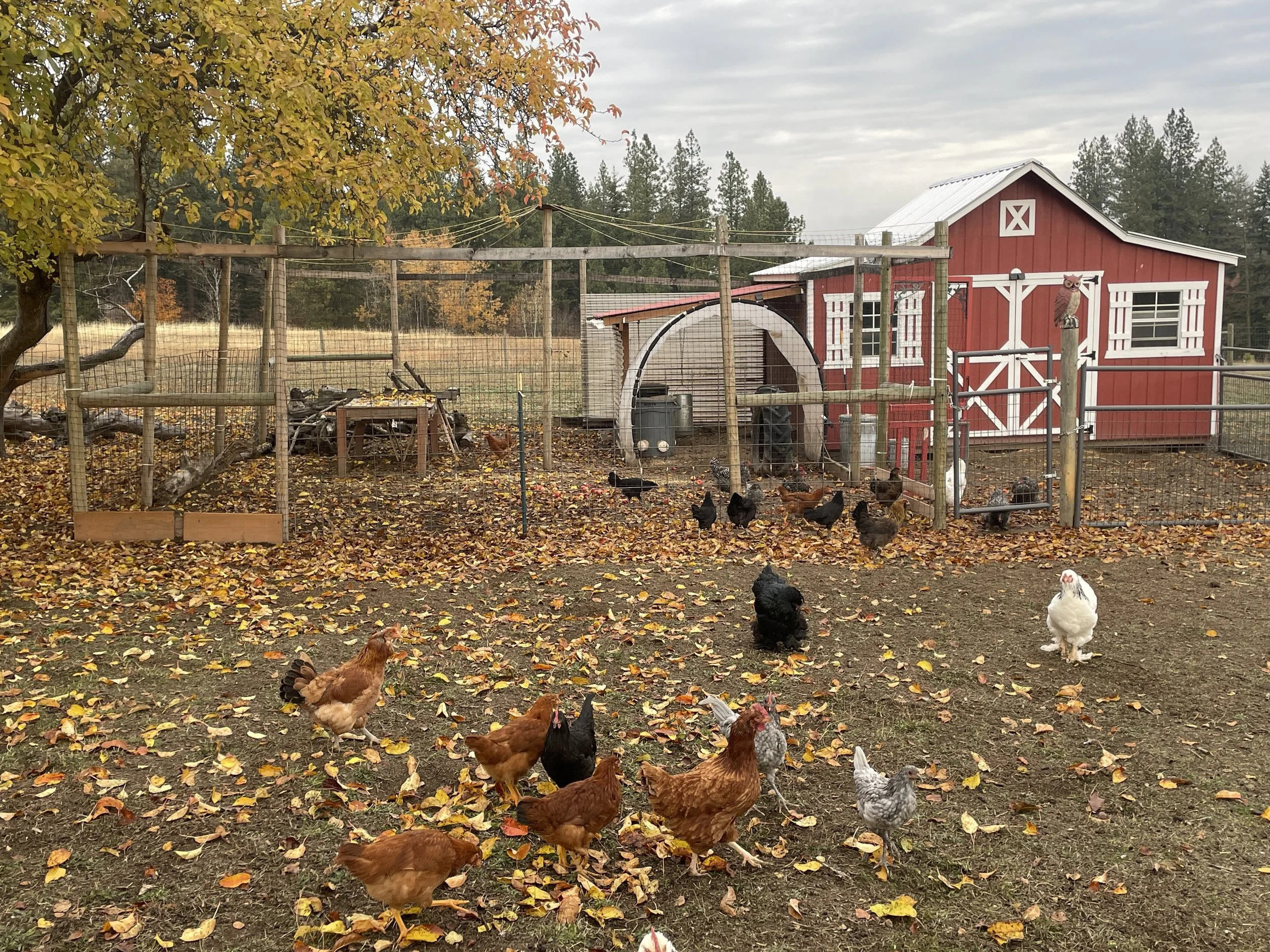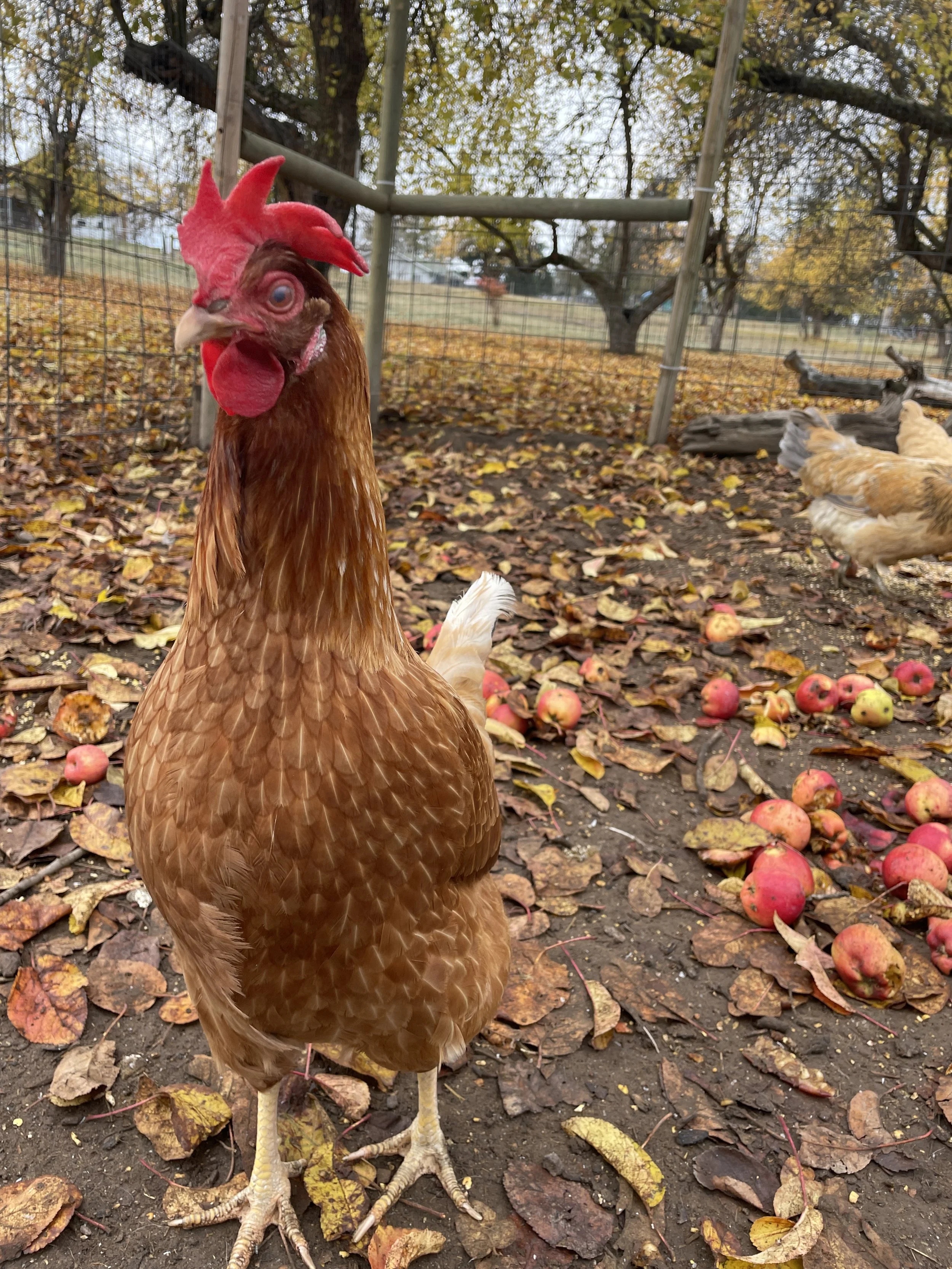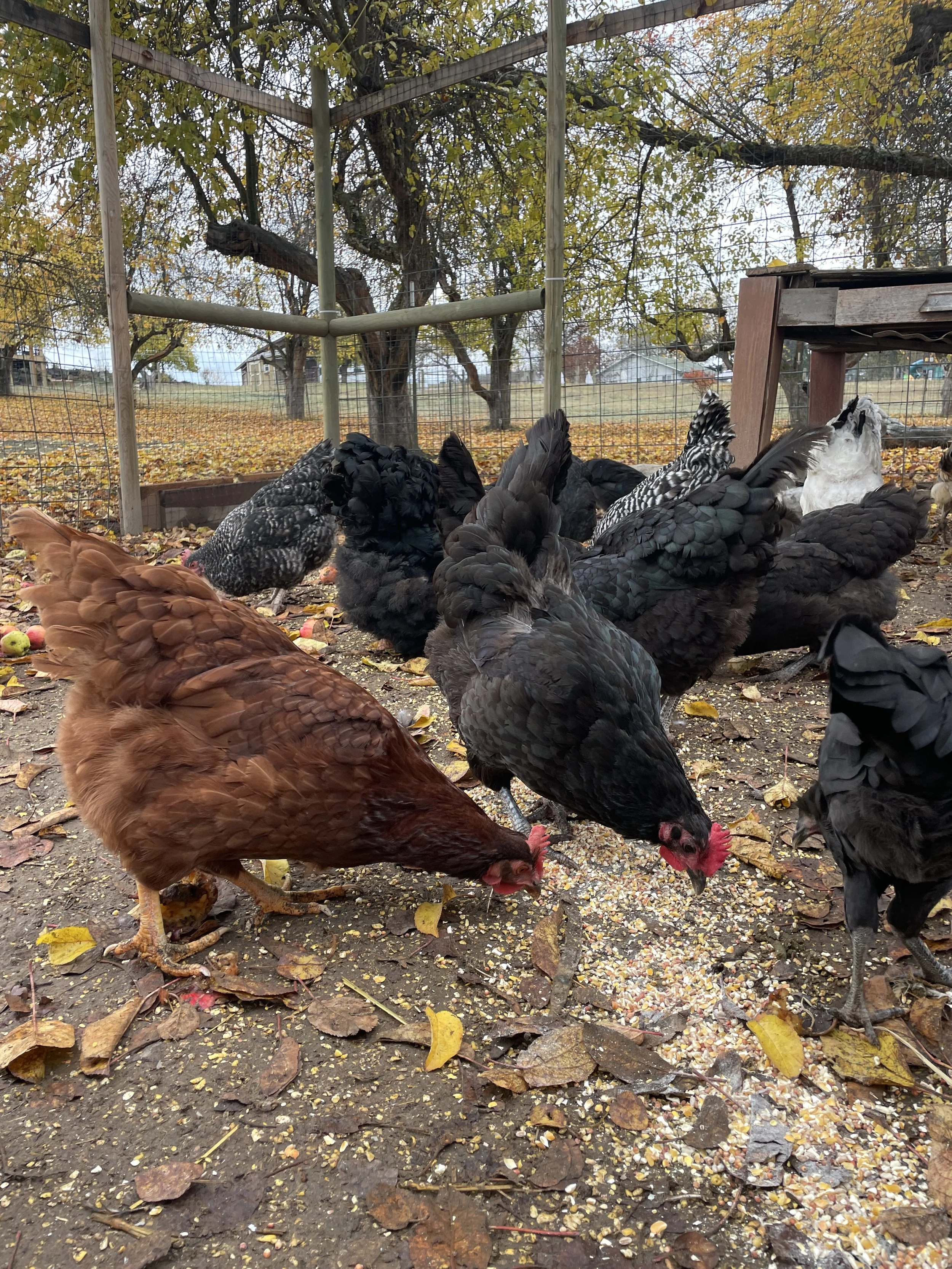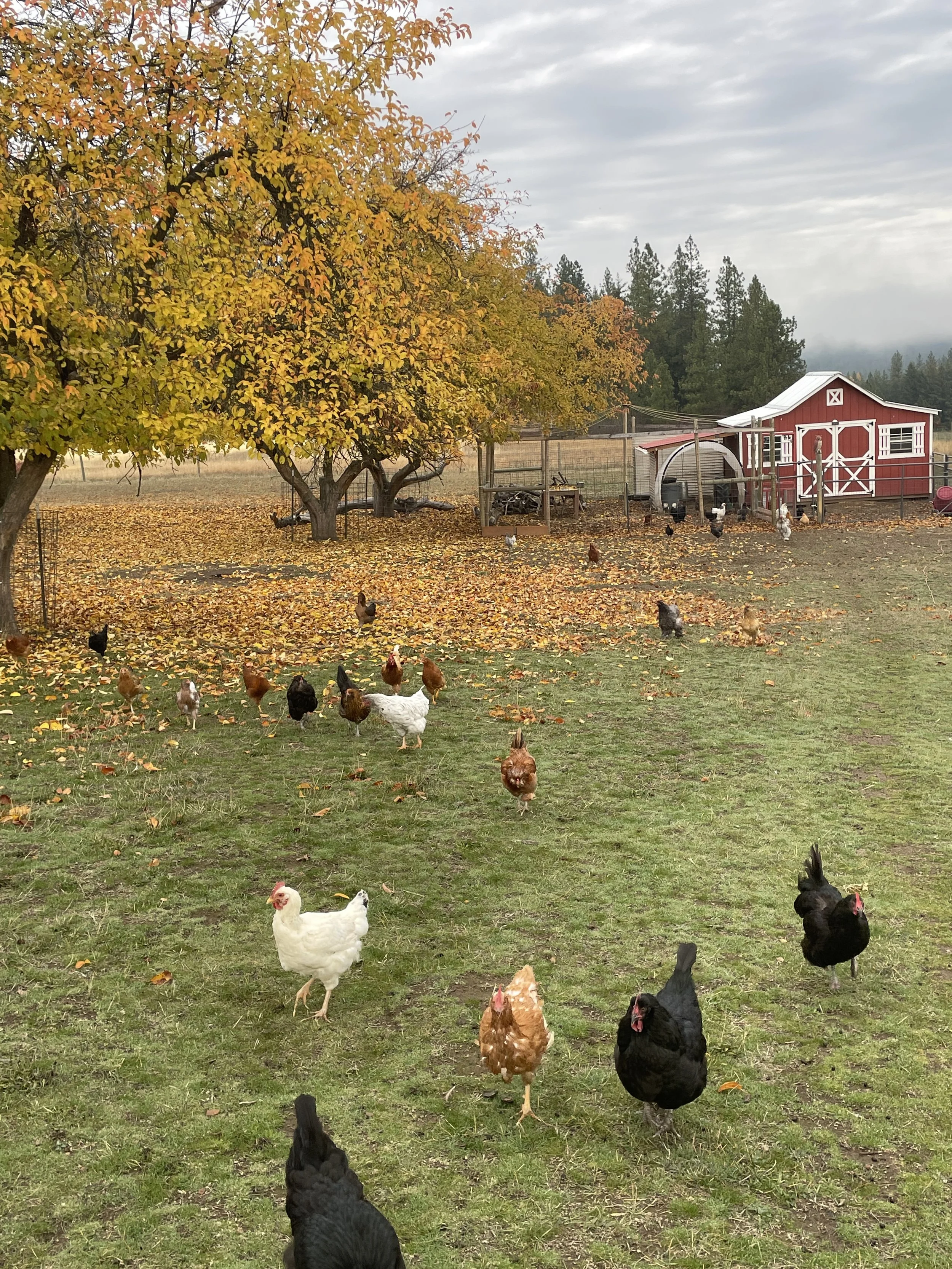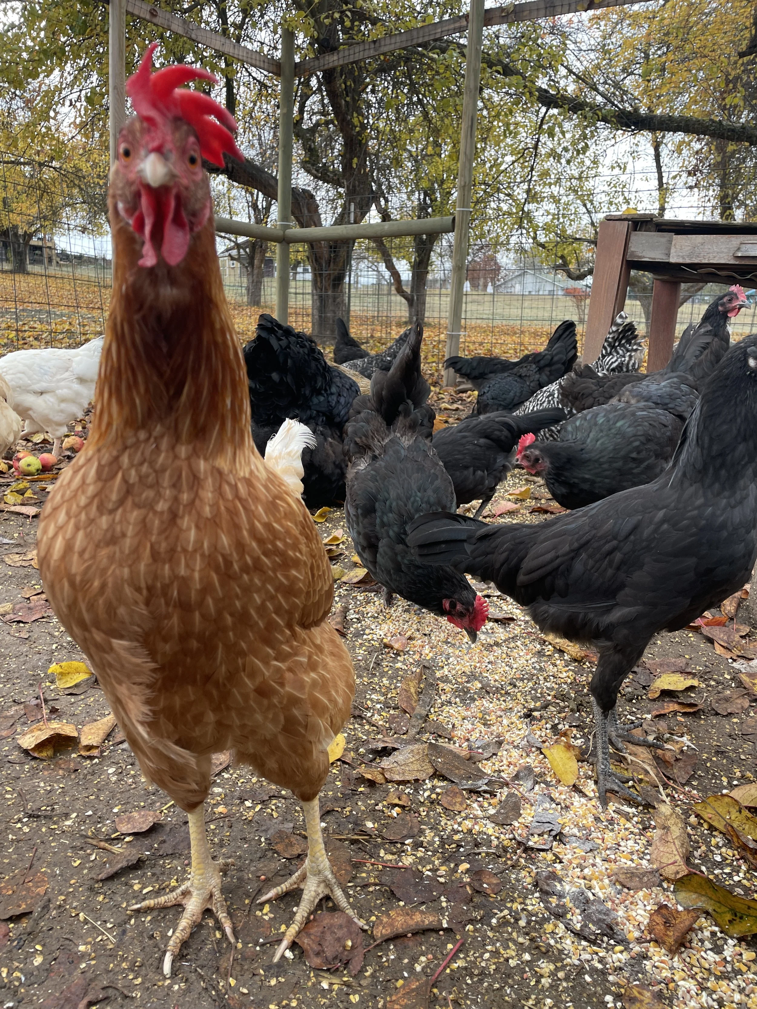 Three of the five hens in the foreground are babies, but it’s getting pretty hard to tell them apart from the old ladies!