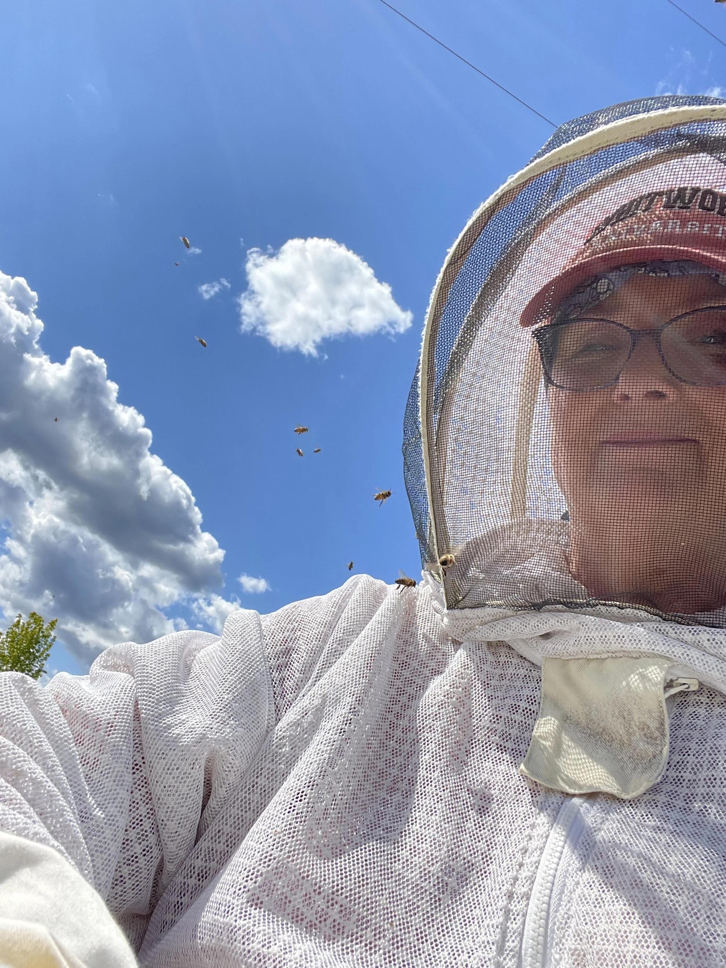 It’s been cool and rainy for the past week+, so I was eager to get into those hives and see what’s going on. The bees are very busy and a LOT calmer than when we moved them last month.