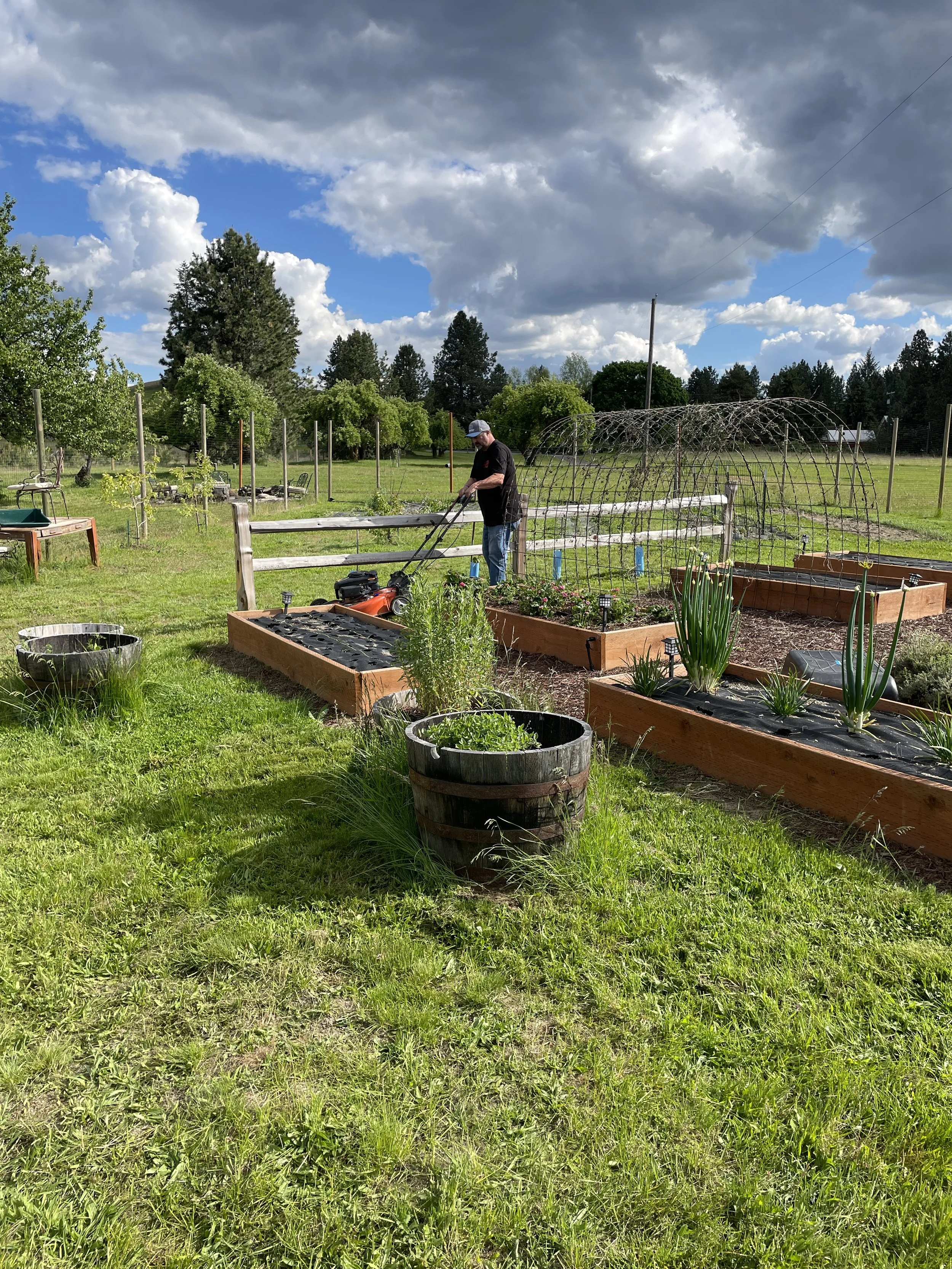It may not look like much, but those are potatoes, coming along nicely. We have had a bale of straw in the back of the truck for two weeks that we just have not gotten around to placing on this bed to hold in the moisture!