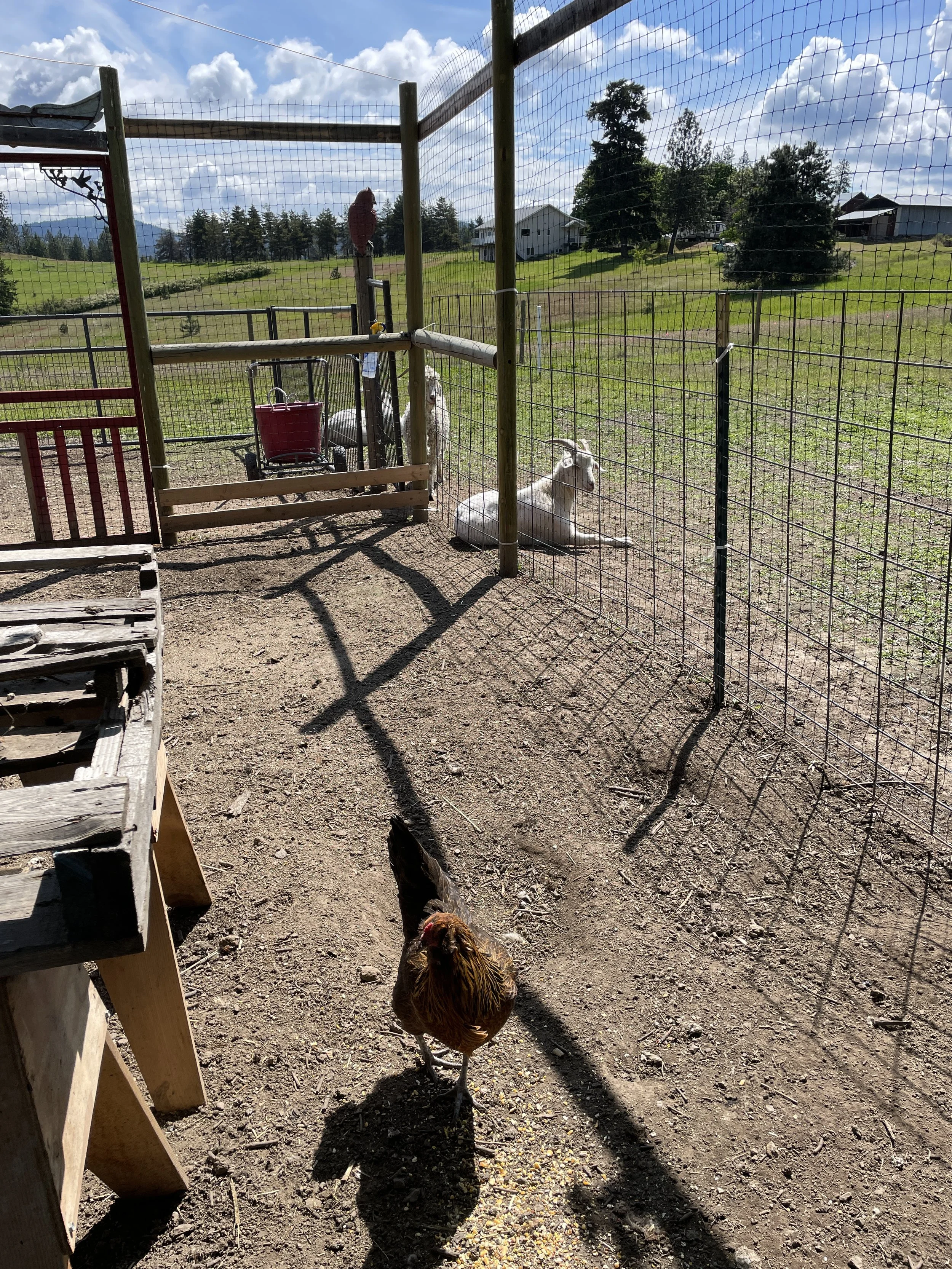 We’ve lost a few hens to predators this spring (pretty much every spring), so I’ll have to be stricter about keeping them in their fenced run. Plus the goats are there to stand guard. For some reason they LOVE laying right in front of the chicken area gate.