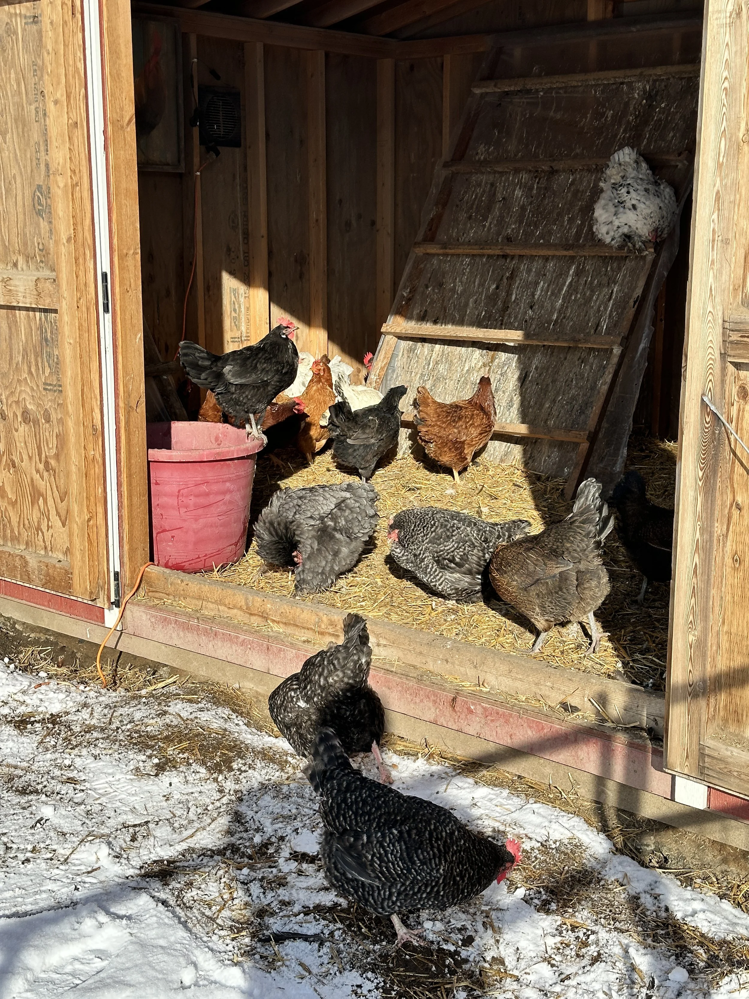 Two days of back-to-back sun over snow = two days of outdoor photos! I can’t resist, because it’s been freakishly gray most of this winter, and we (and the animals) greatly prefer and appreciate the blue-white combination.