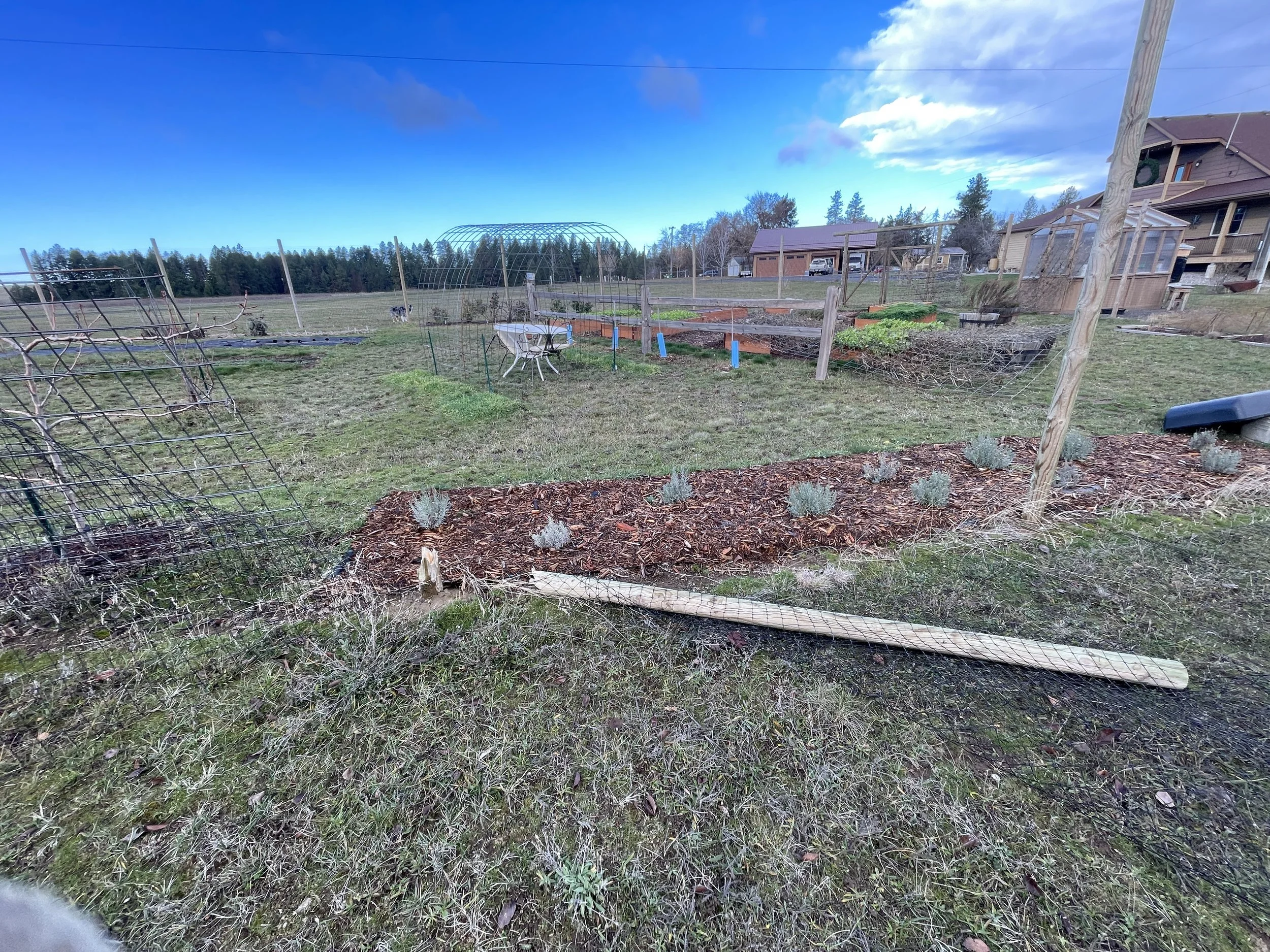 The real excitement was out in the garden. Both of the cattle panel trellises that lived between our raised bed boxes blew away. That was crazy to see! It took me a minute to realize what had happened. It doesn’t seem like they have enough surface area to really catch the wind, but I guess the leftover vines created enough of a sail. No real “damage” there, though, we just have to put them back in place.