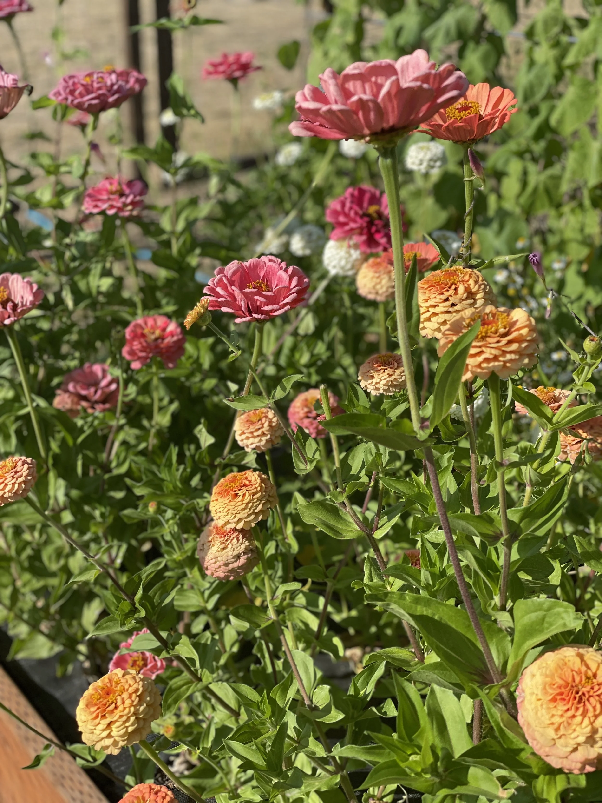 I know bachelor buttons were an early summer favorite this year, and I have an unexplainable obsession with the herb borage’s tiny blue star-shaped flowers. But my heart still belongs to zinnias. I’ve already decided that I am going to do one of the large in-ground beds all in zinnias next year. I am going to try seeds from my favorite gardening expert, most (all?) of which will be in the pastel side of the color pallete. We will see! It does seem a little crazy to grow a cut flower garden and then not be able to bring myself to cut any blooms. I just love how they look in the garden. But maybe if I grow more next year I will be wiling to cut more, too.